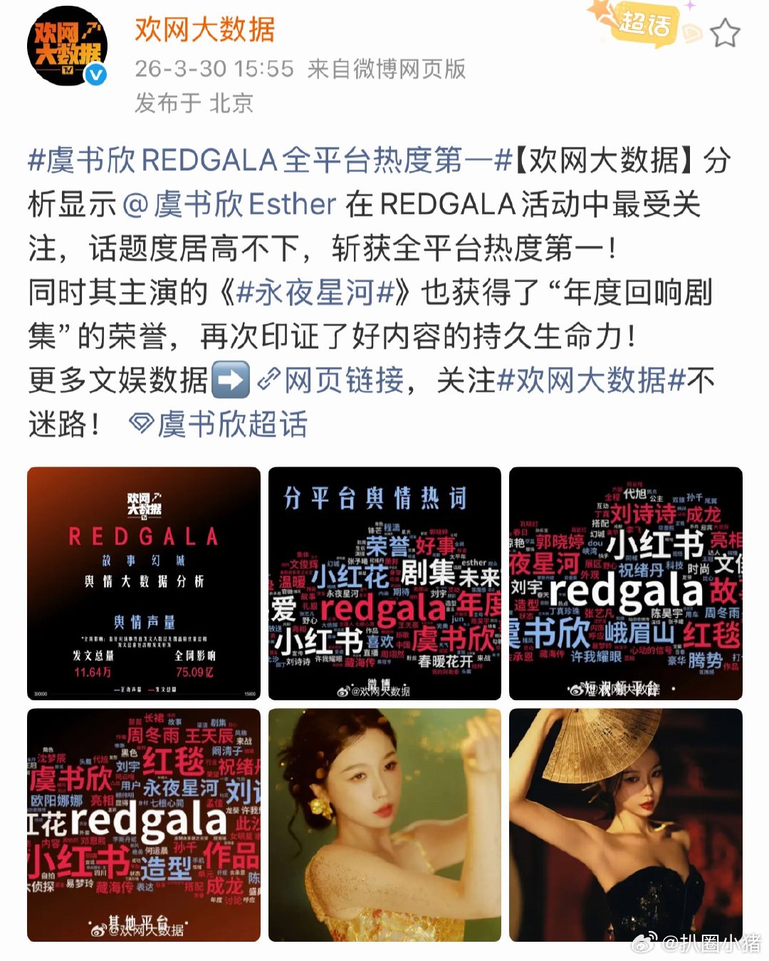 虞书欣REDGALA全平台热度第一!
