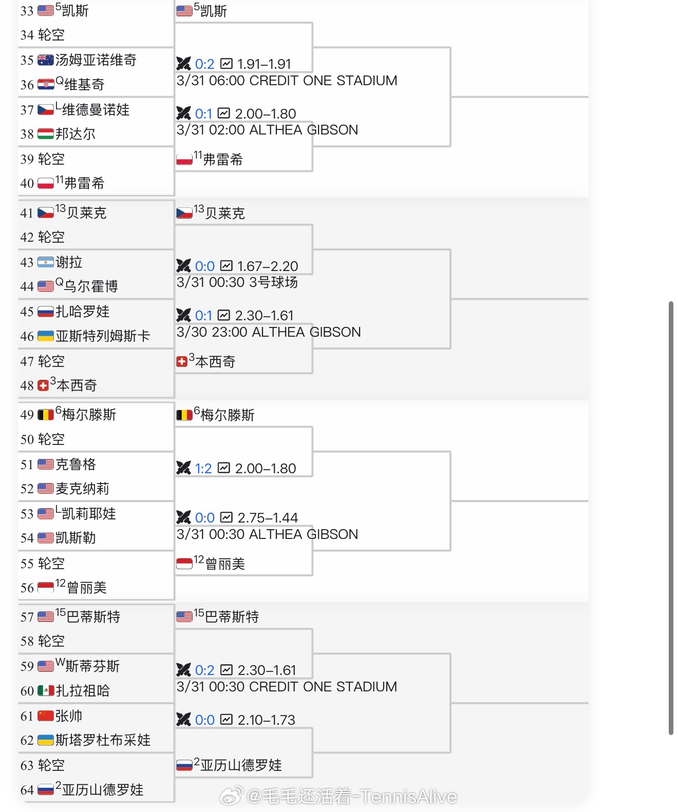 佩古拉、凯斯坐镇。张帅vs斯塔罗杜布采娃正赛17位美国选手。