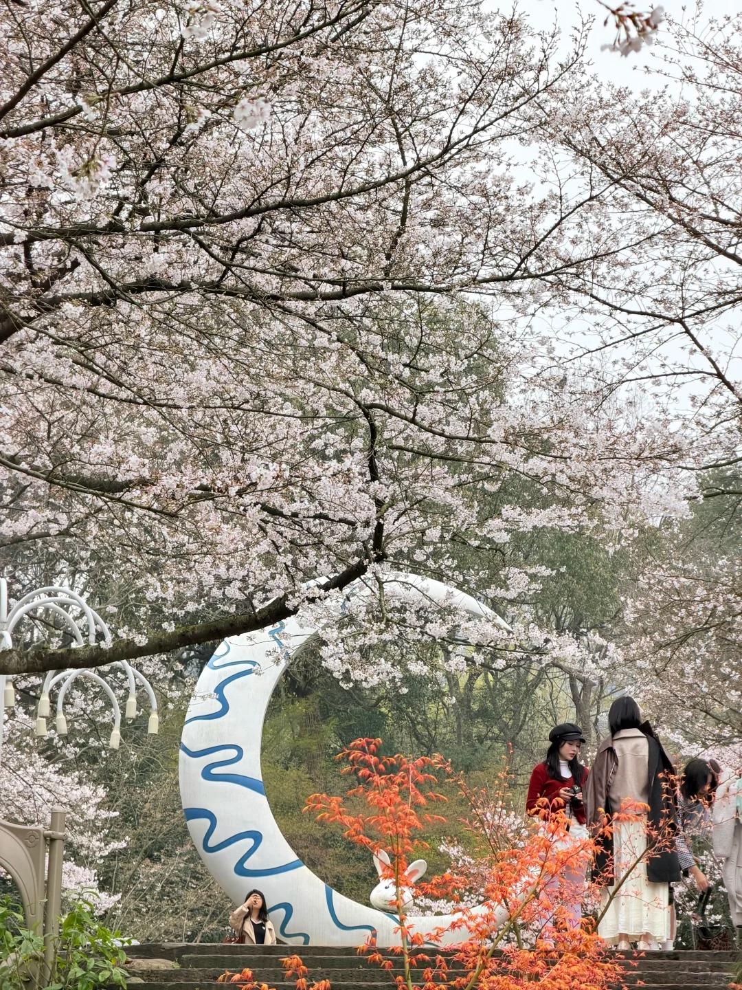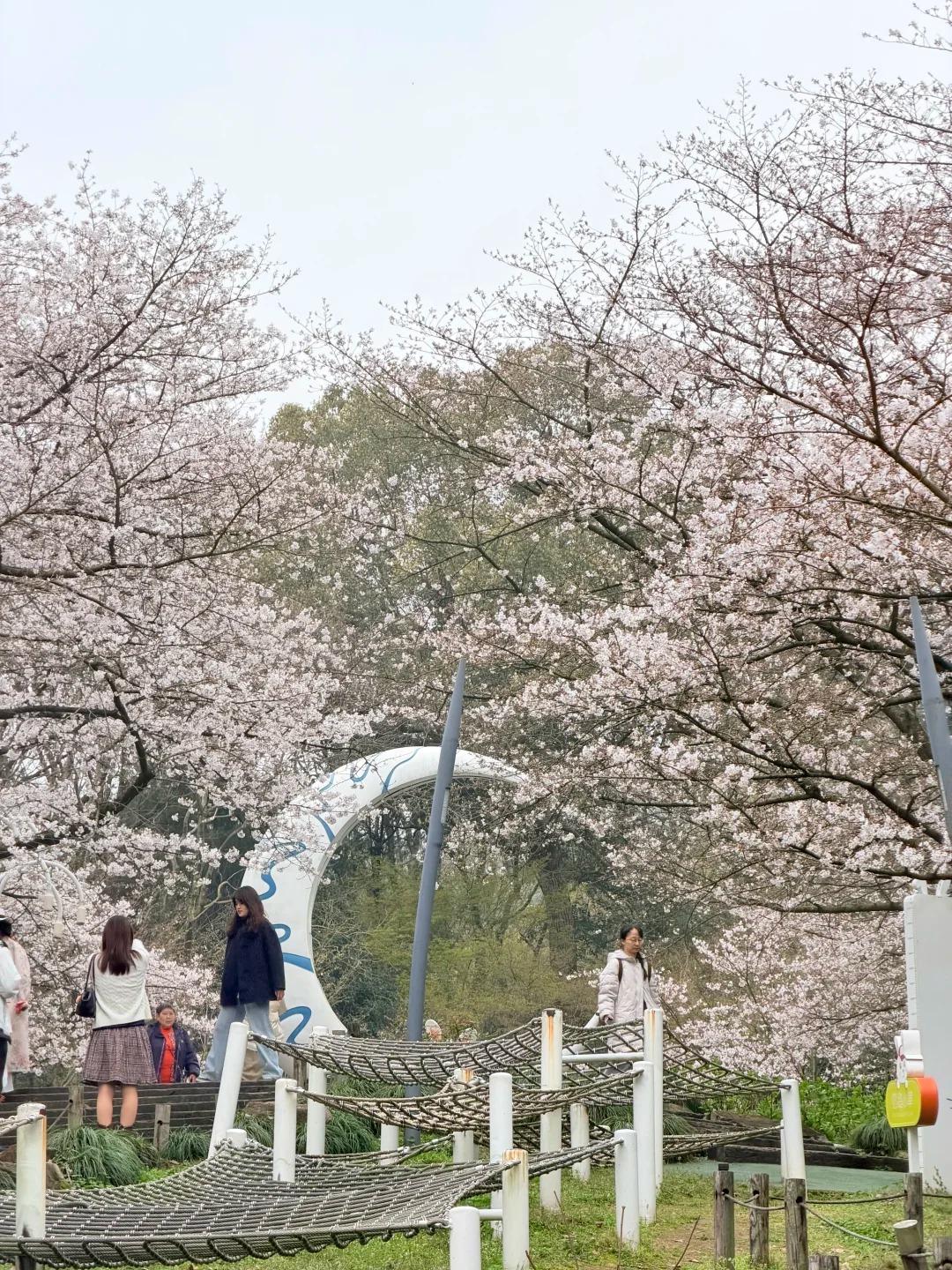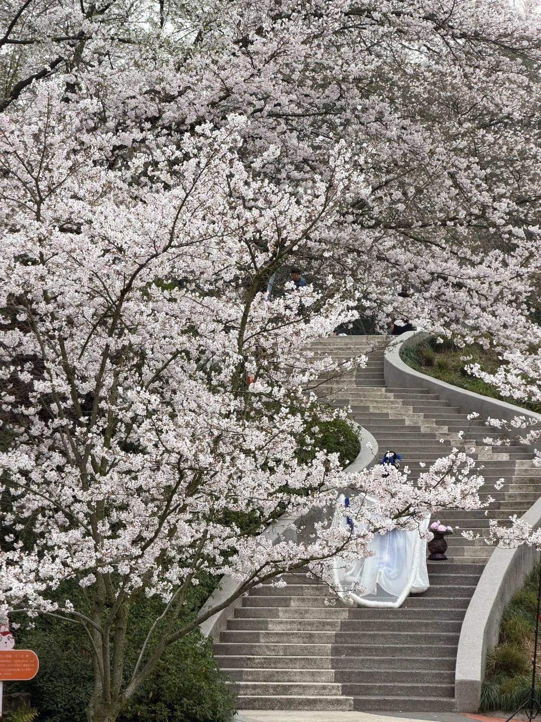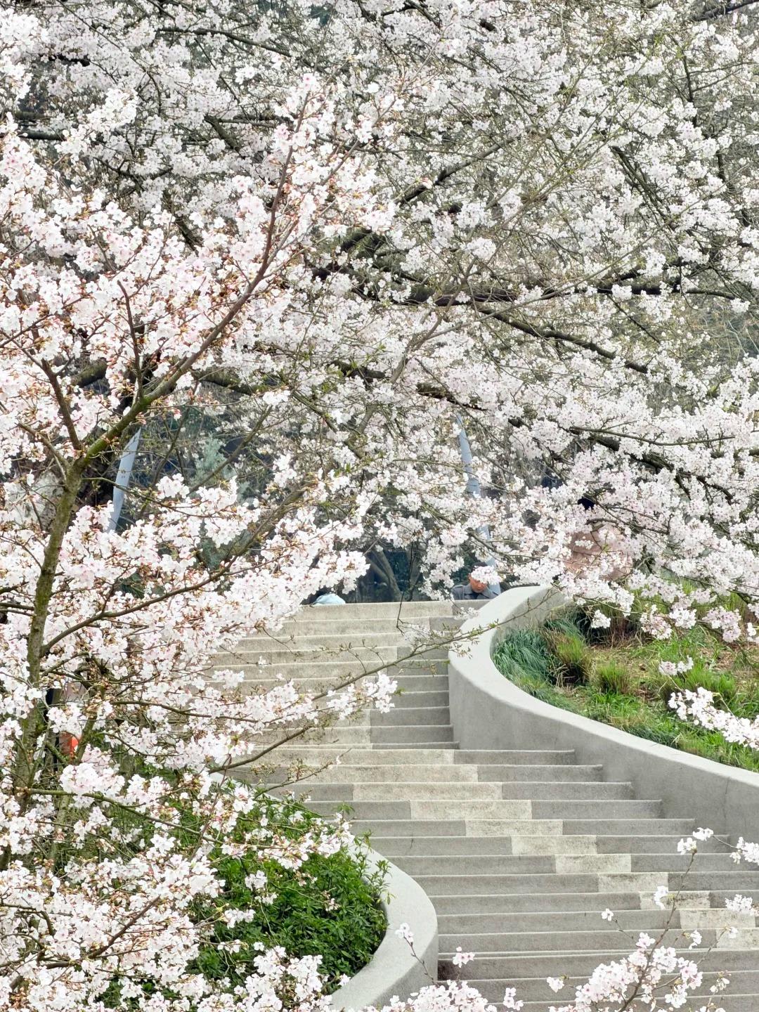 3 月最美赏樱地 踏入杭州少年儿童公园的瞬间,春日浪漫便撞了满怀。满树粉白的染井吉野樱簇拥着 S 形樱花阶梯,抬眼是层层叠叠的樱花云,衬着透亮如洗的蓝天;微风拂过,细碎的花瓣簌簌落下,轻吻肩头,落在石阶上织成粉色绒毯。 暖阳穿过花枝,在地上投下斑驳光影,童趣雕塑藏在花影间,每一幕都像从童话里裁出来的画面。不必挤在西湖边,来这处春日秘境,把三月的温柔与烂漫,都定格在镜头里。