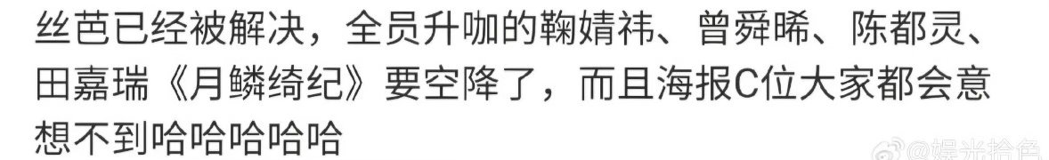 🍉主说鞠婧祎 曾舜晞 陈都灵 田嘉瑞月鳞绮纪明天定档后天播,貌似丝芭的事儿解决