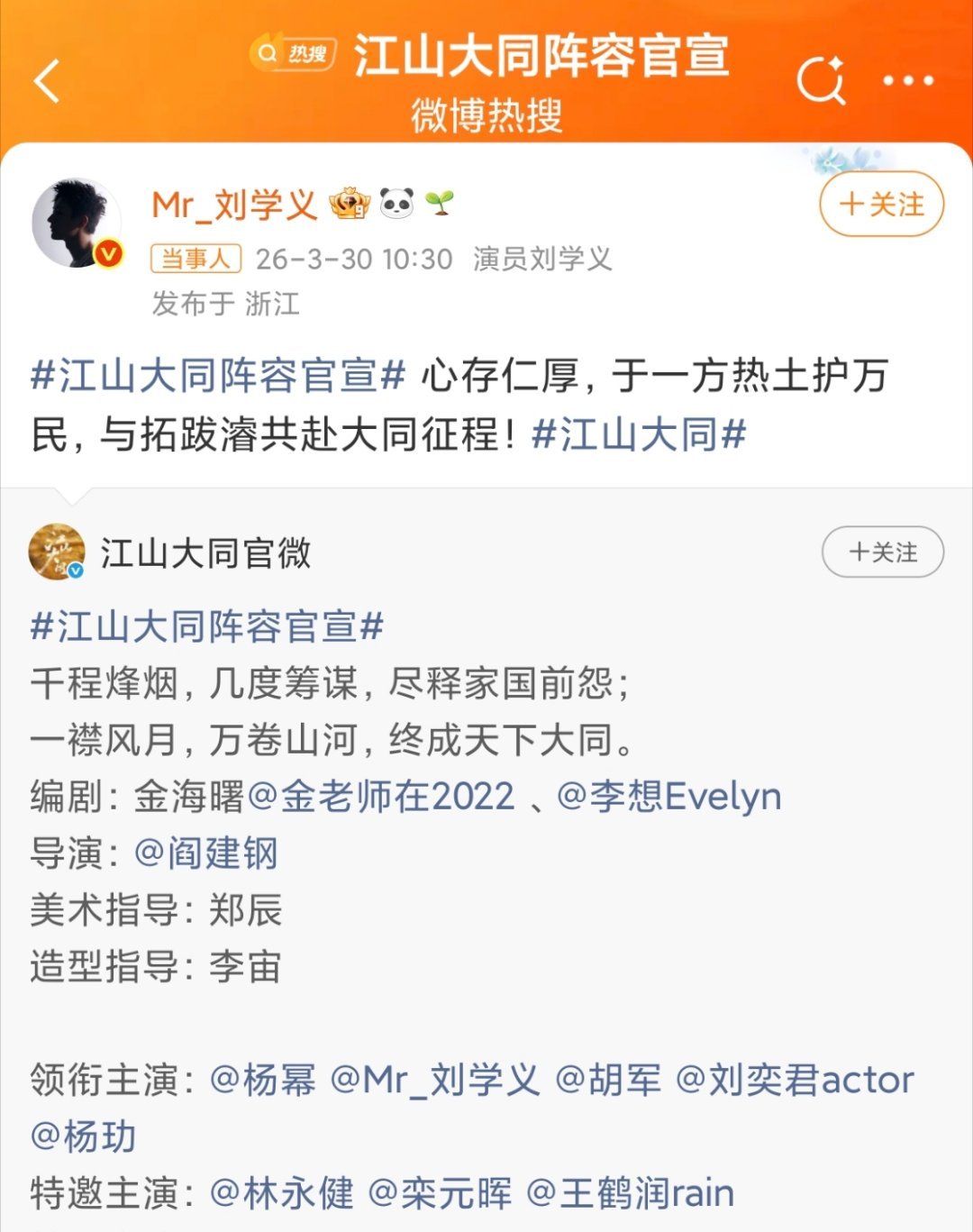 《江山大同》官宣,杨幂粉丝给男主刘学义排上字了刘学义升咖