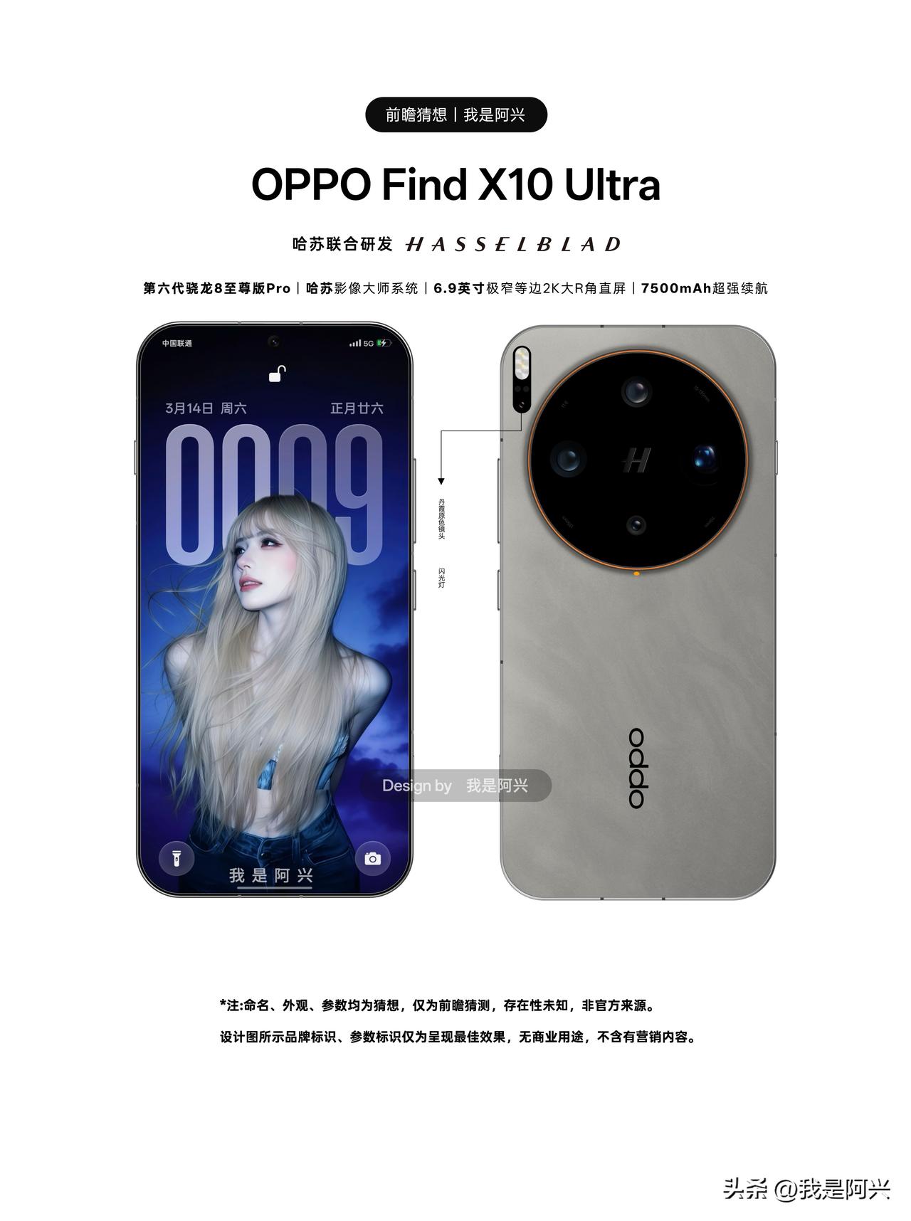 今天又重新调了两版OPPO Find X10 Ultra的前瞻设计。后盖配色几乎接近哈苏大地探索版的颜色,而且还加入了沙漠流沙效果,镜头Deco部分增加了哈苏橙色元素,一个橙色在镜头圈上面,一个橙色在Deco凸起上面,哈苏logo颜色换成了哑光色。