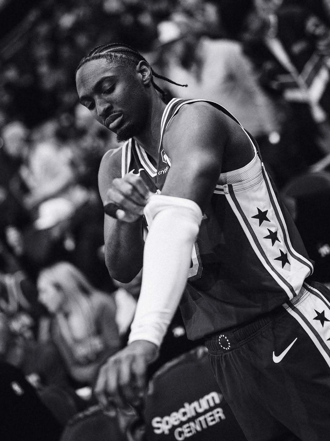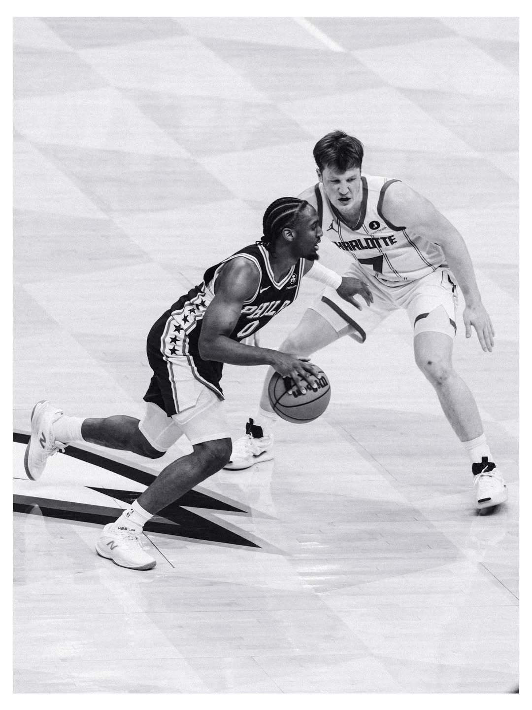 赛事图集!黑白滤镜!费城76人官方分享一组昨日对阵黄蜂队比赛时拍摄的球员现场酷图