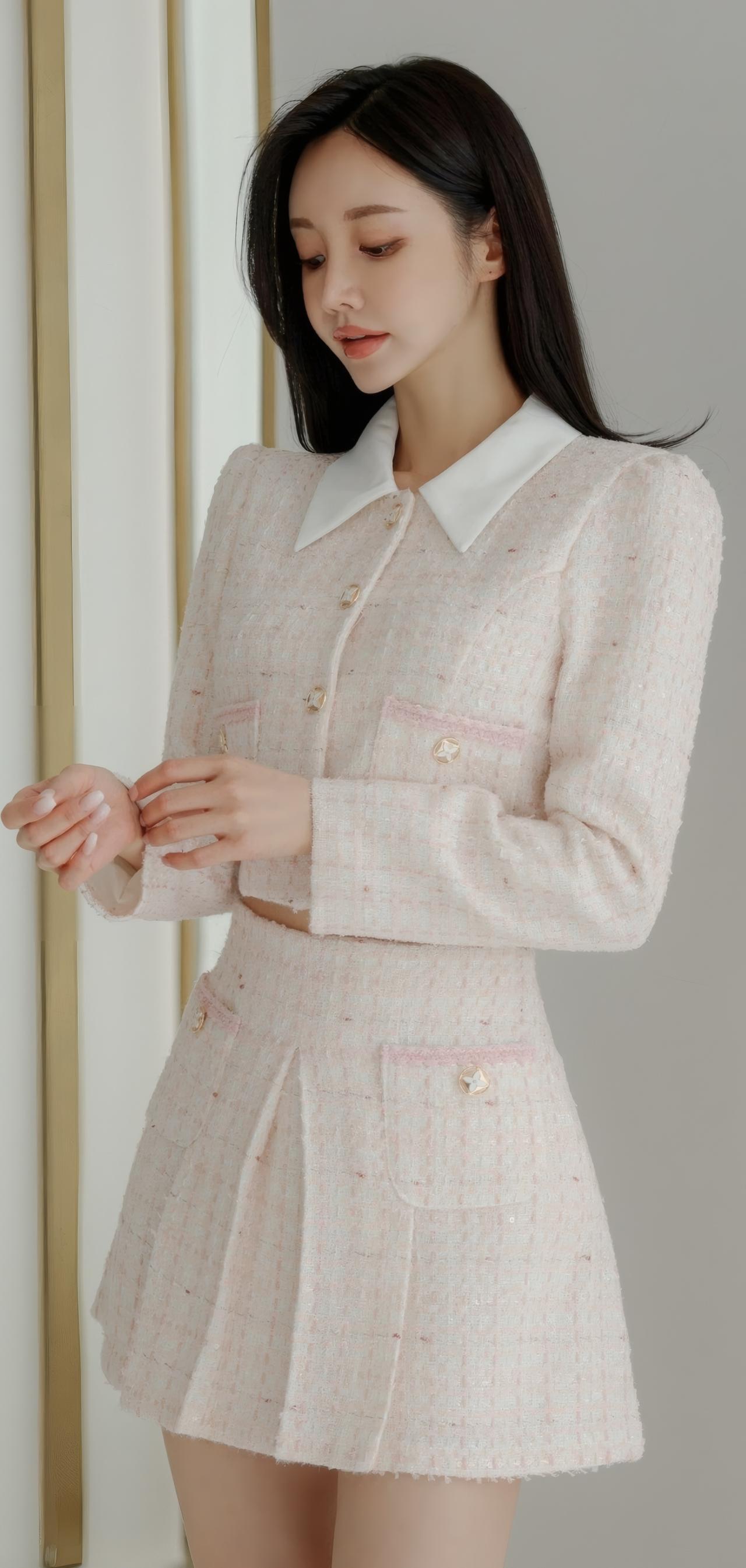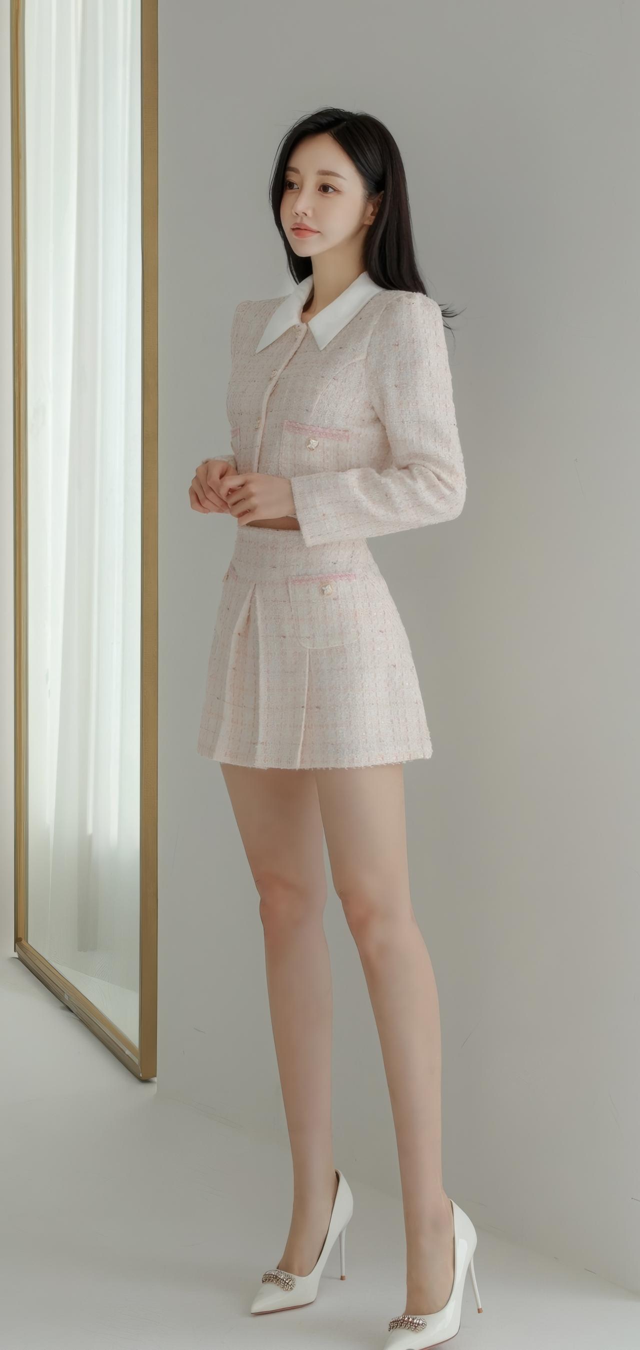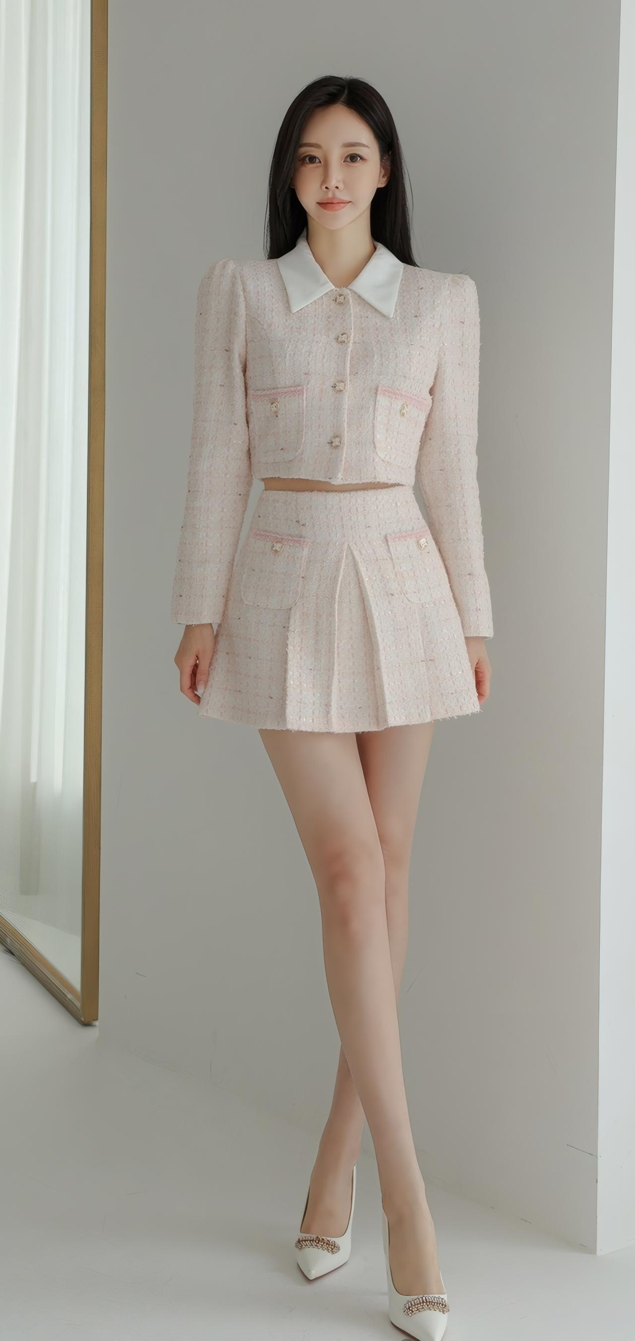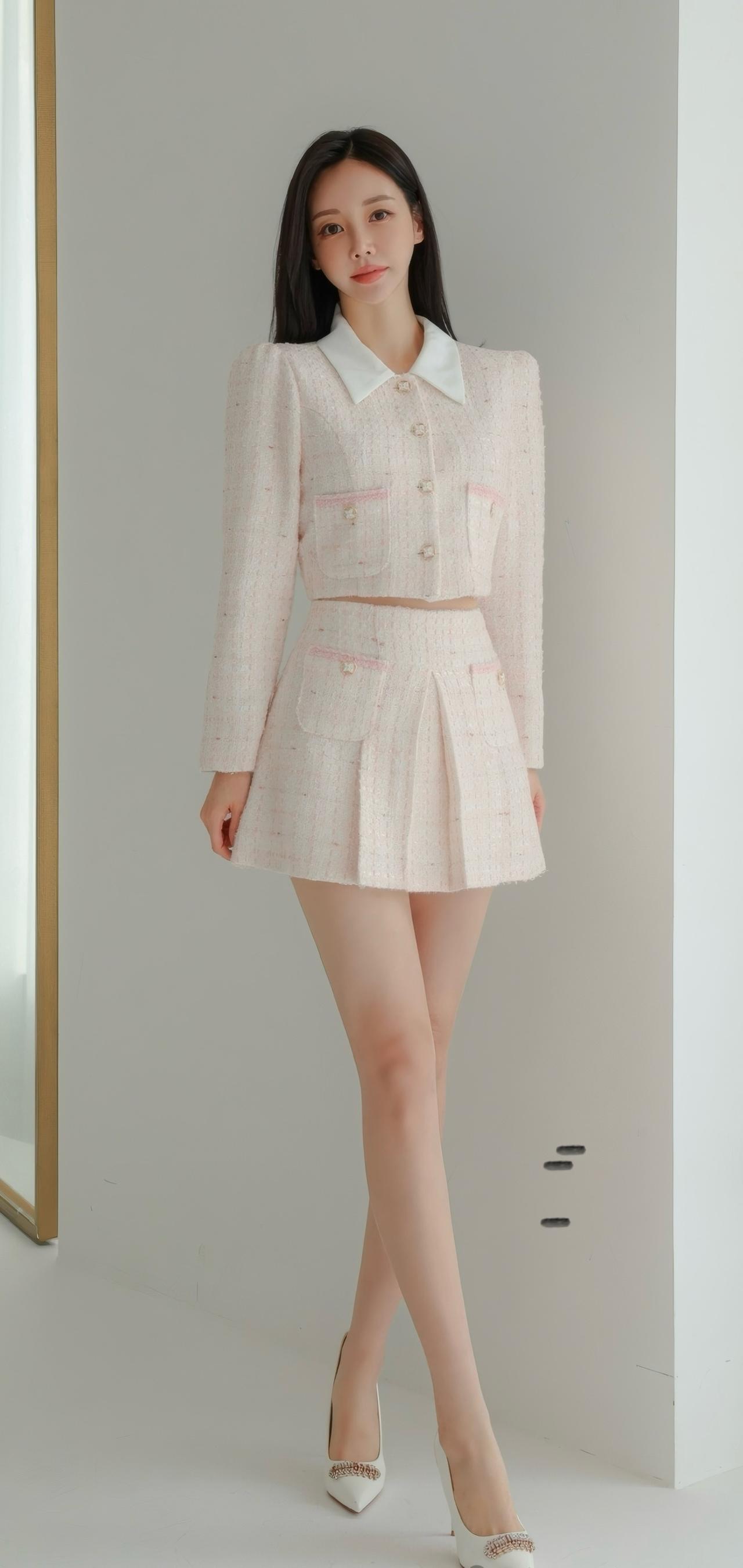 优雅粉色套装,甜美少女风,搭配高跟鞋,尽显时尚魅力!💗✨