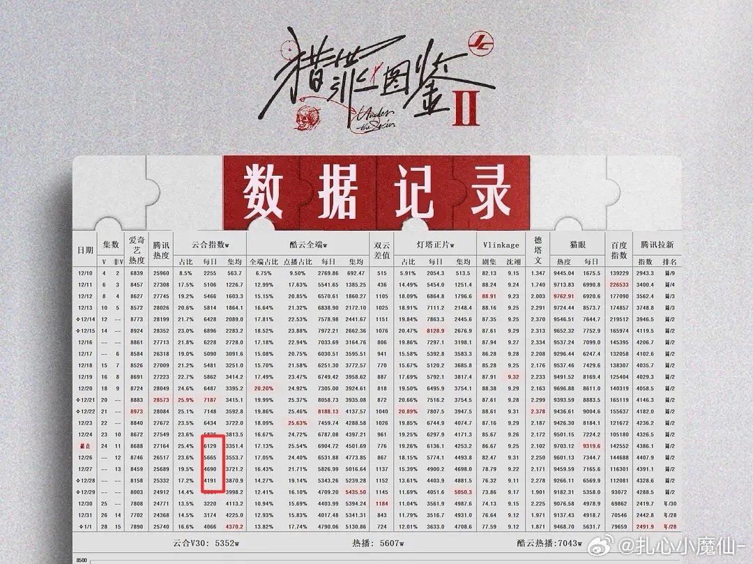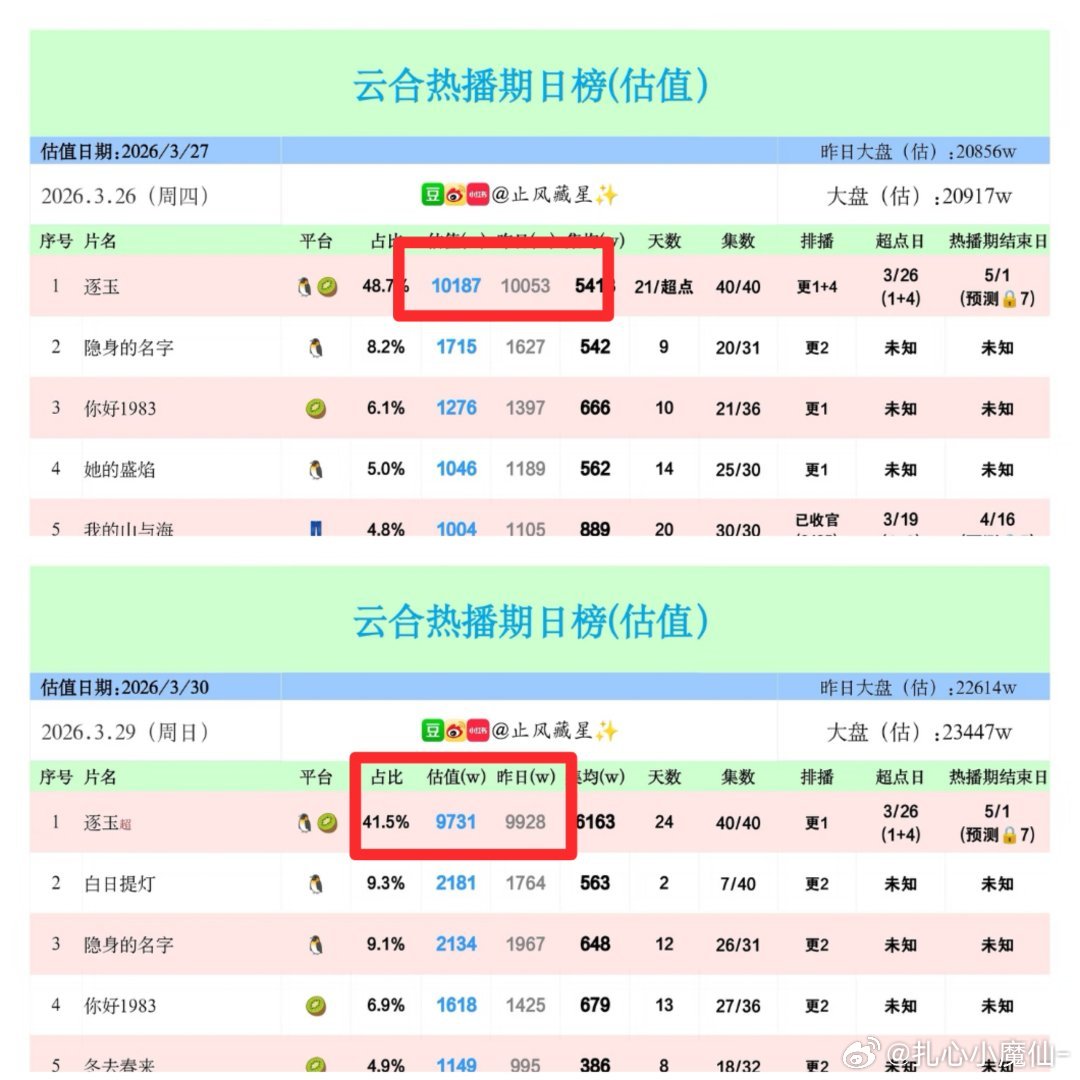 《逐玉》26超点10187w,29号第4天9731w,下跌不到450w…