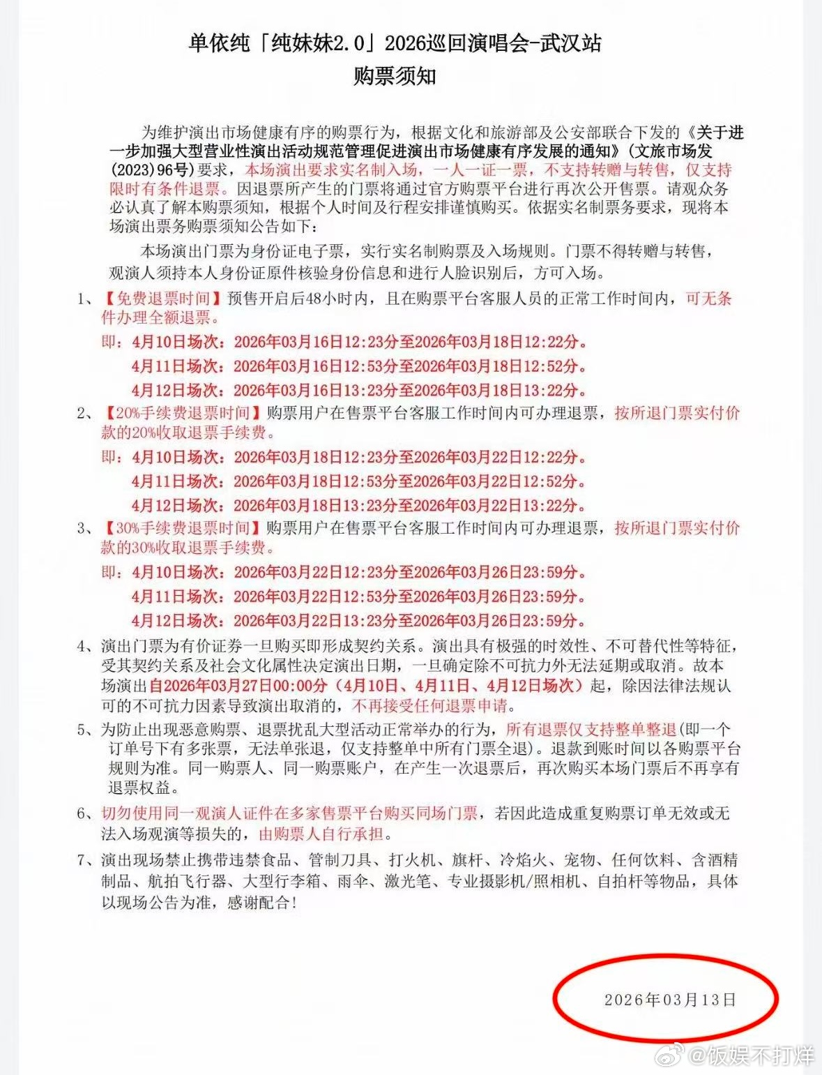 单依纯歌迷损失512元手续费强行退票大麦称单依纯武汉演唱会禁止退票 临近演出退票产生手续费,这是票务平台写进购票须知里的统一规定,不是只针对单依纯。而且3月13日就已经发布了购票声明,这样曲解,实在没有必要。