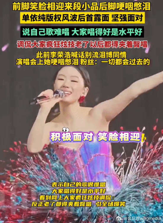 “版权风波”后单依纯露面据中国蓝新闻报道,3月29日单依纯“版权风波”后首露面,坚强面对。说自己的歌难唱,大家唱得好是水平好。调侃大家疯狂炫技老了还得夹着臀唱……逗笑大家。此前李荣浩喊话别流泪博同情,今晚她哽咽憋泪感谢大家,粉丝高喊:一切都会过去!