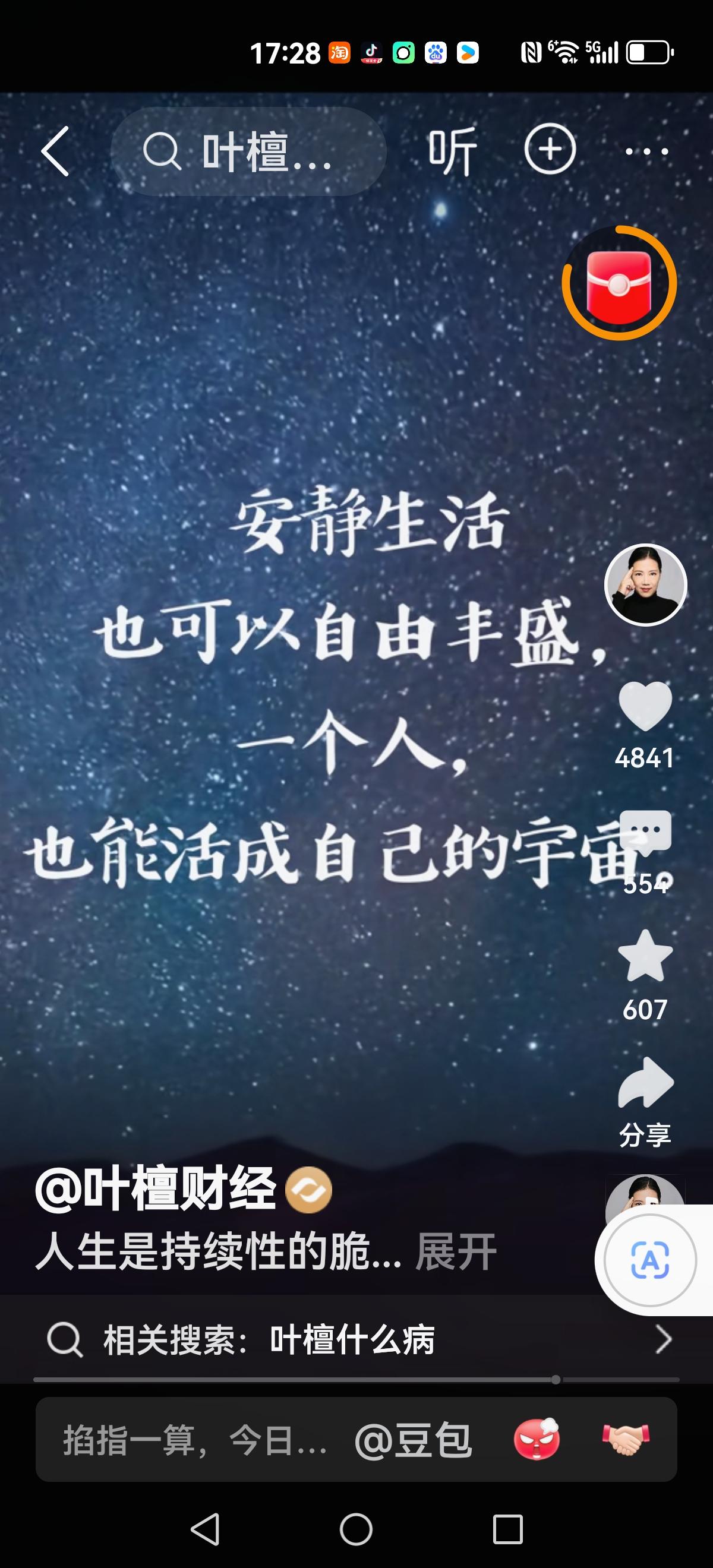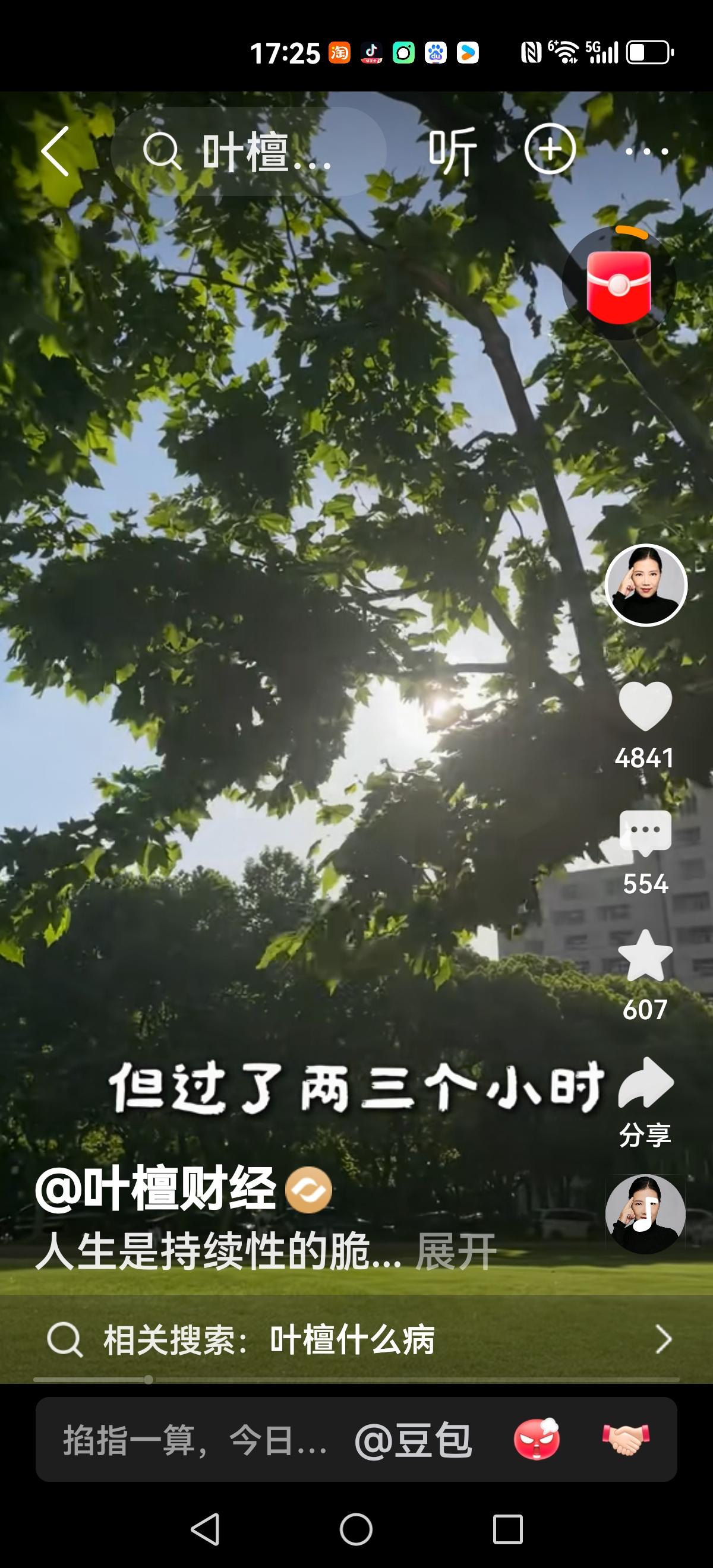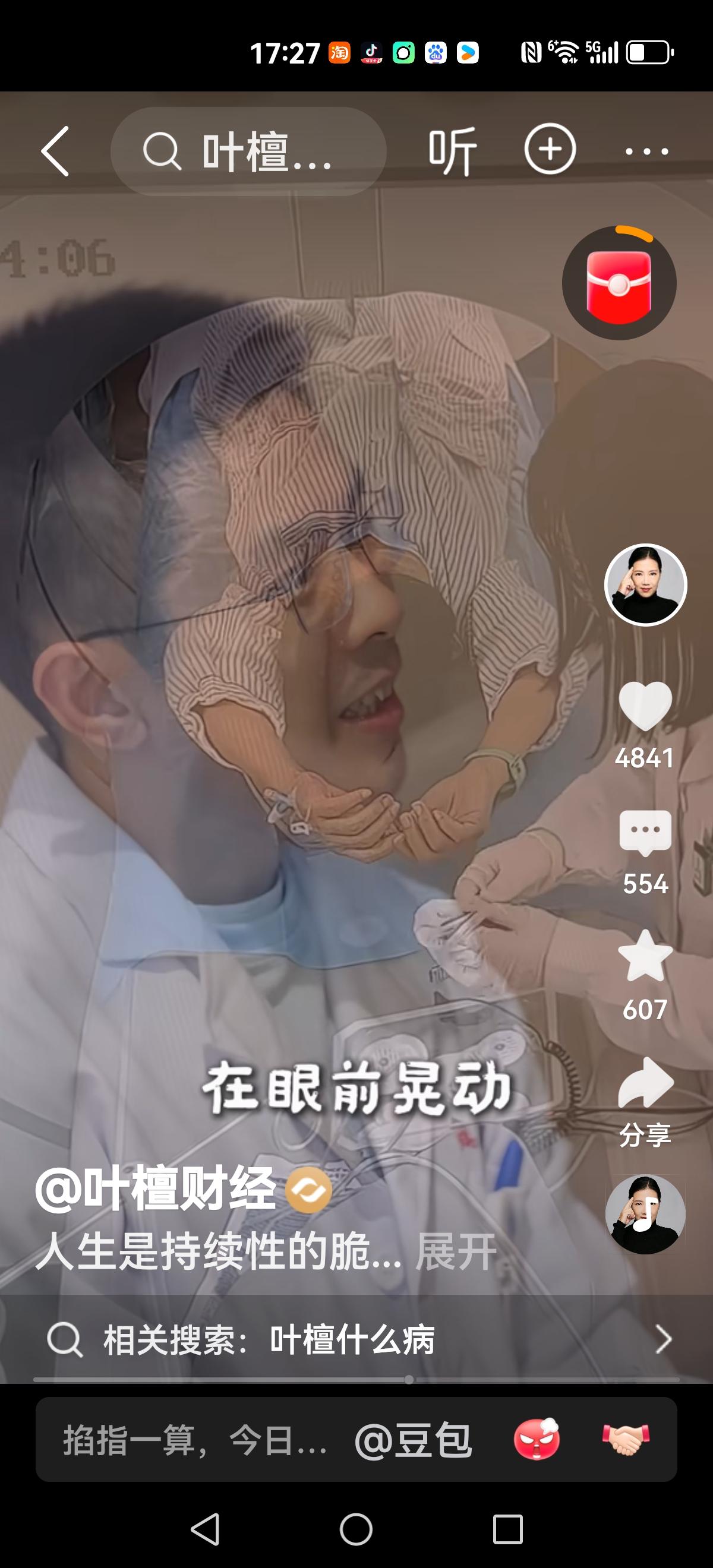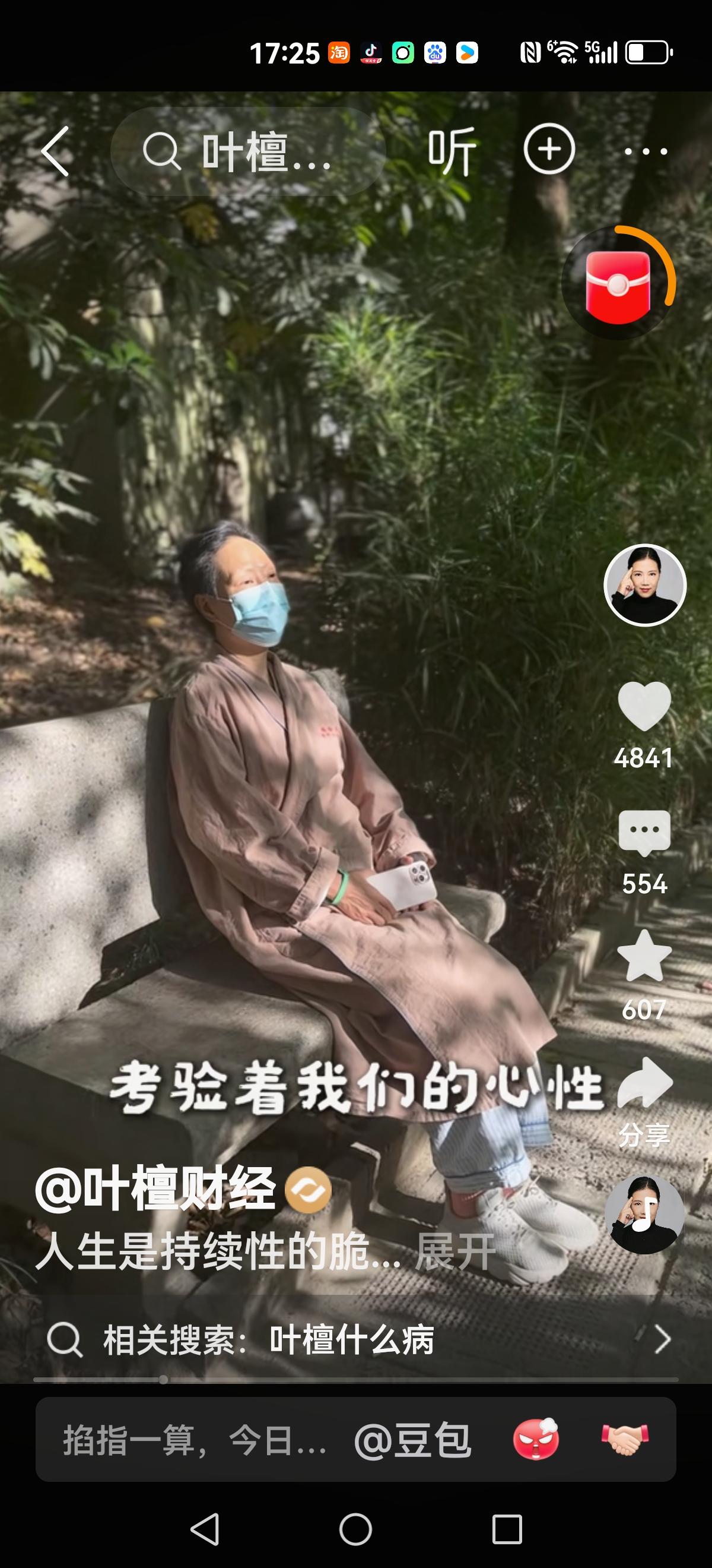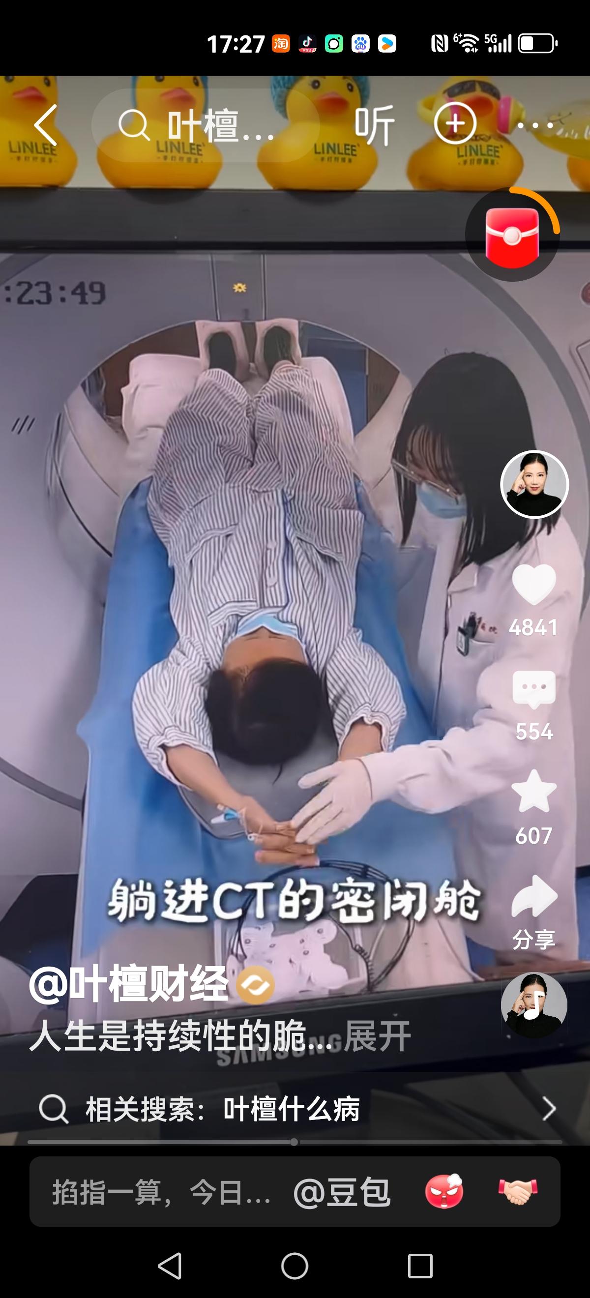 【叶檀的救赎】 这一次看到叶檀复查的视频,感触良久,她在反思自己得病之路,何尝不是拼命工作,熬出无数日夜,身后一个团队都是以她为中心,无人替代。 直到有一天她在直播中倒下了,住进医院,她还是幸运的,抗癌三年半,这次复查非常好,可以说完全治愈了癌症。 当然她有两大优势: 有人脉关系,有好的医疗队伍 她有实力,能做各种治疗。 无论怎么说她也在反思自己人生,是那么脆弱与渺小,珍惜生命吧。