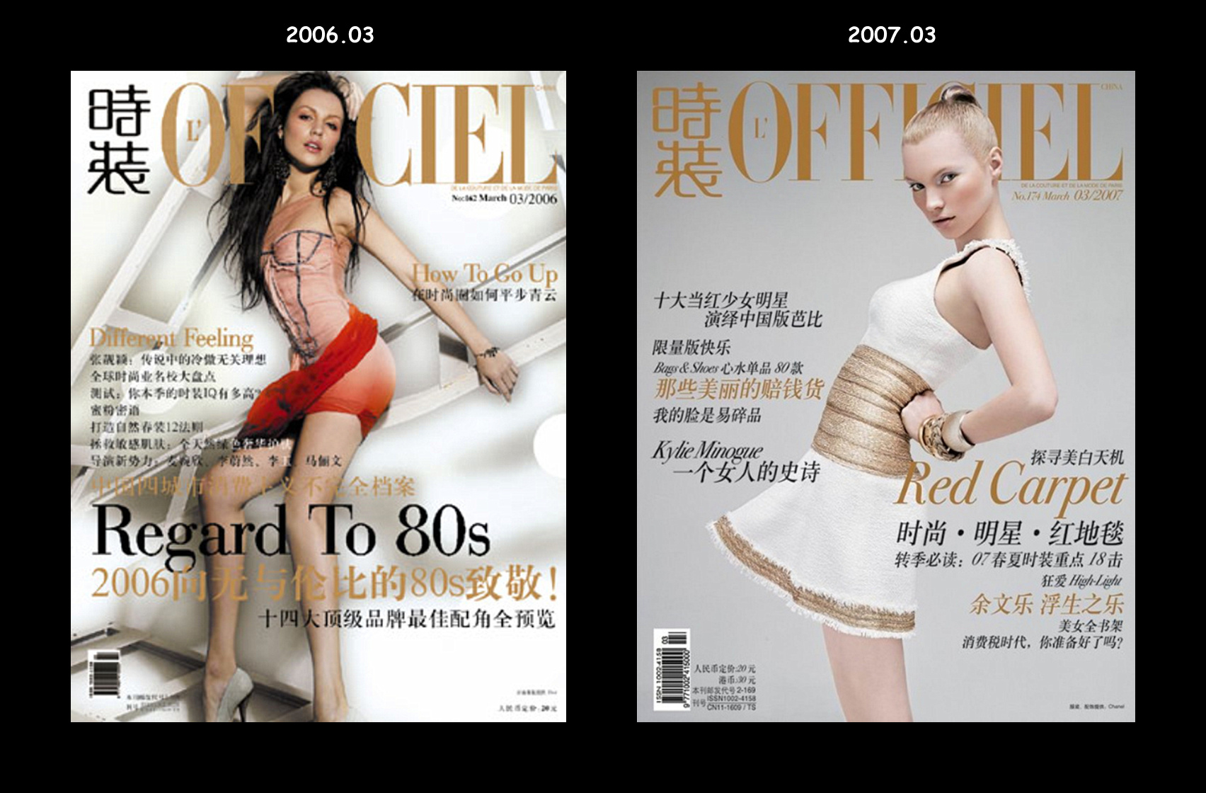 时装 LOFFICIEL 的历史也相当久远 ,1980 年创刊 ,是目前主流刊物范畴里做得最早的一本 ,2001 年杂志迎来了它的第一次版权合作 ,与韩国的《FARBE》携手 ,正是这一时期 ,杂志开始从本土转向国际视野 ,海外模特 、本土当红女星相继登场 ,不过合作时间没有很长 ,到了 2003 年十二月迎来与 LOFFICIEL 的版权合作 ,所以我们的开季回顾就从版权合作后的第一期开始 .