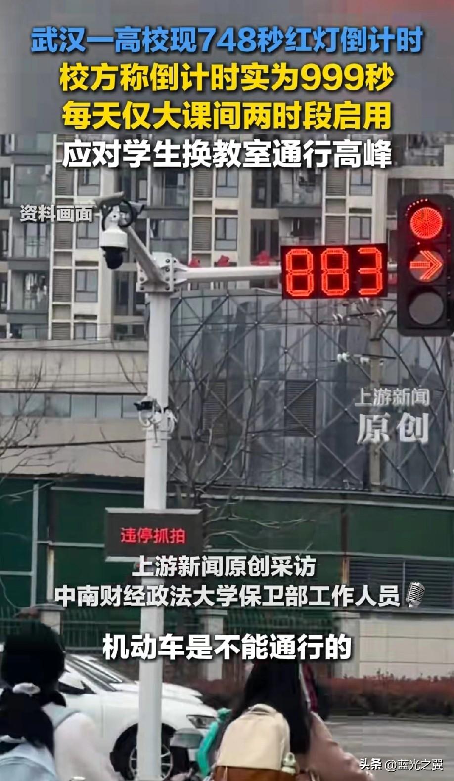 “等一个红绿灯,竟然要十多分钟?”近日,中南财经政法大学南湖校区文治楼门前的一处红绿灯,因倒计时高达749秒而意外“走红”网络,引发了关于校园交通管理的广泛讨论。 据多名该校学生在社交平台反映,途经该路口时遭遇了“超长待机”的红灯。现场拍摄的图片显示,红绿灯的等待倒计时一度超过700秒,相当于12分钟以上! 这一罕见的交通现象迅速引发热议。有网友调侃道:“还好没超过15分钟,不然等个红绿灯还得交一笔停车费。”更有学生打趣称:“60秒的红灯我愿意遵守交规,但700多秒的红灯简直就是‘氛围灯’,回去睡一觉再过来,它估计还是红的。” 面对学生的困惑与网络热议,中南财经政法大学保卫部交通科工作人员于3月30日正式回应:该信号灯并非故障,最长设定时间实为999秒,接近17分钟! 工作人员解释,这一超长红灯仅在特定时段启用——即上午9时35分至10时、下午3时35分至4时的大课间高峰期,目的是应对学生换场换教室的通行高峰。该路口位于校园内部道路,红绿灯时长由学校自行设定,而非交管部门统管! “因为那个时段步行的学生数量特别庞大,为了避免机动车穿行引发安全事故,所以加长了红灯时间,禁止机动车通过。”工作人员表示,在设置信号灯之前,该路口高峰期均由学校交通科工作人员进行人工截停与现场管控,信号灯的作用等同于人工管控,目的都是为了维持校园秩序! 999秒红灯,约等于16.65分钟。这个时长对于坐在车里的司机来说,或许确实漫长。但当我们想到,这十多分钟的等待背后,是成千上万学生安全通行的保障,这份耐心或许就有了意义! 正如一位网友所言:“在大学校园里,学生才是真正的主角。让车等人,总比让人等车更安全。”在校园这片特殊的土地上,安全的底色,永远比效率更重要!