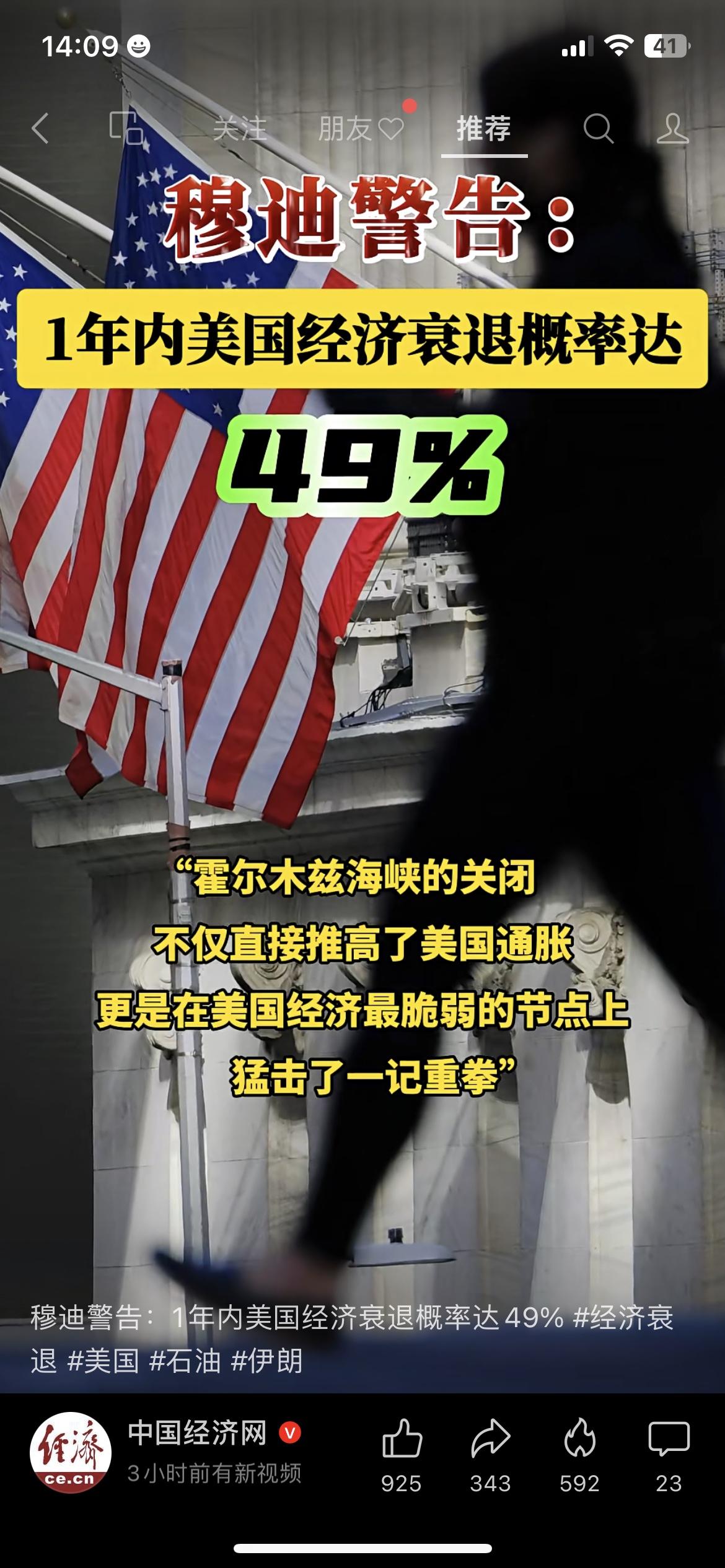 穆迪发出预警,美国经济衰退概率接近警戒线 国际评级机构穆迪给出最新判断,美国一年内经济衰退概率达到49%,已经非常接近临界线。全球经济环环相扣,外部波动也会间接影响到我们的生活和工作。不管是赚钱还是存钱,接下来更要稳字当头,做好自己的现金流规划。 全球经济 美国经济 经济预警