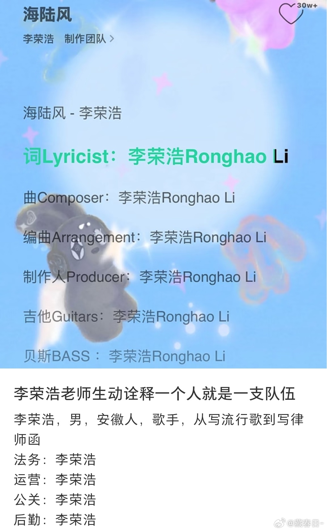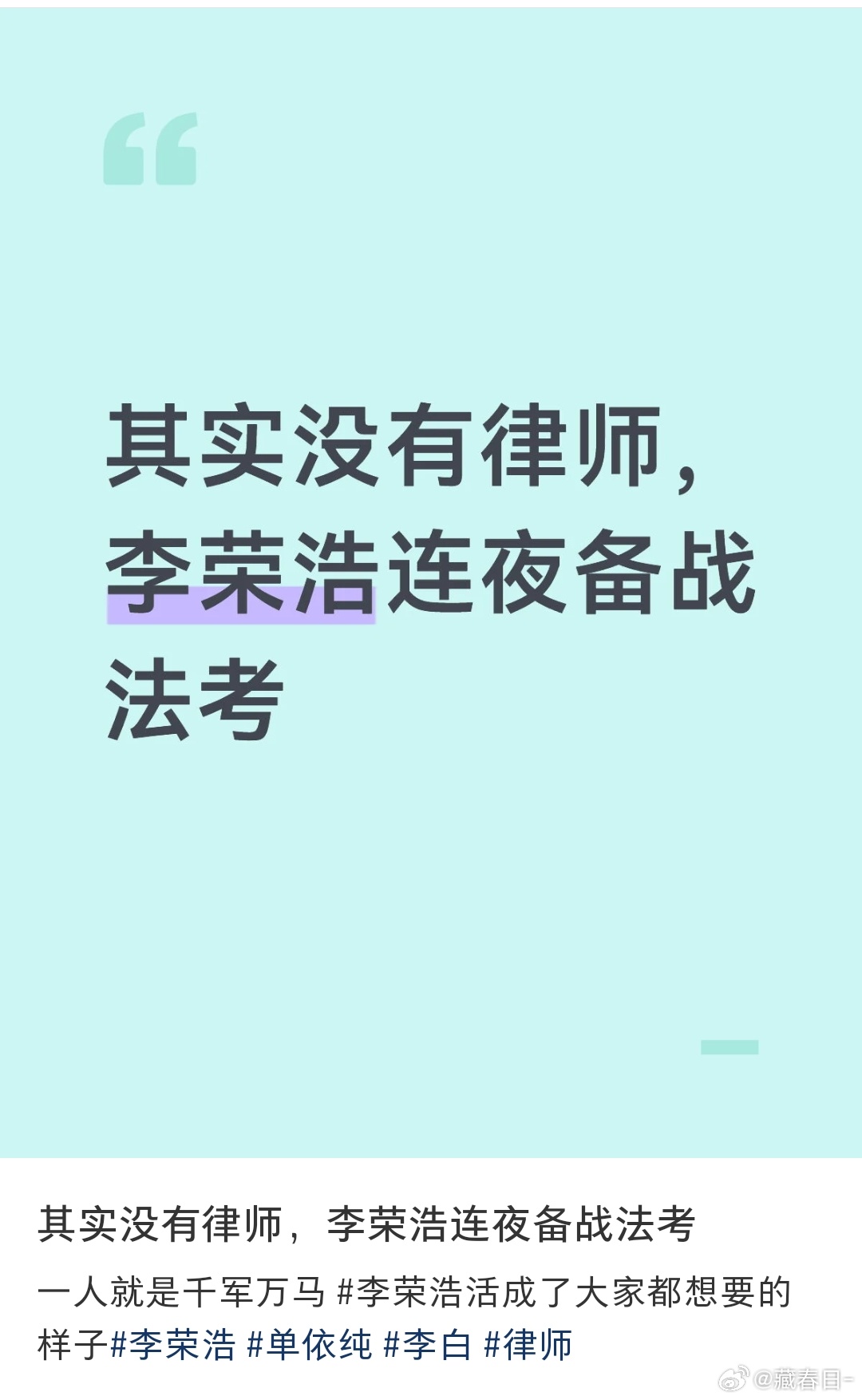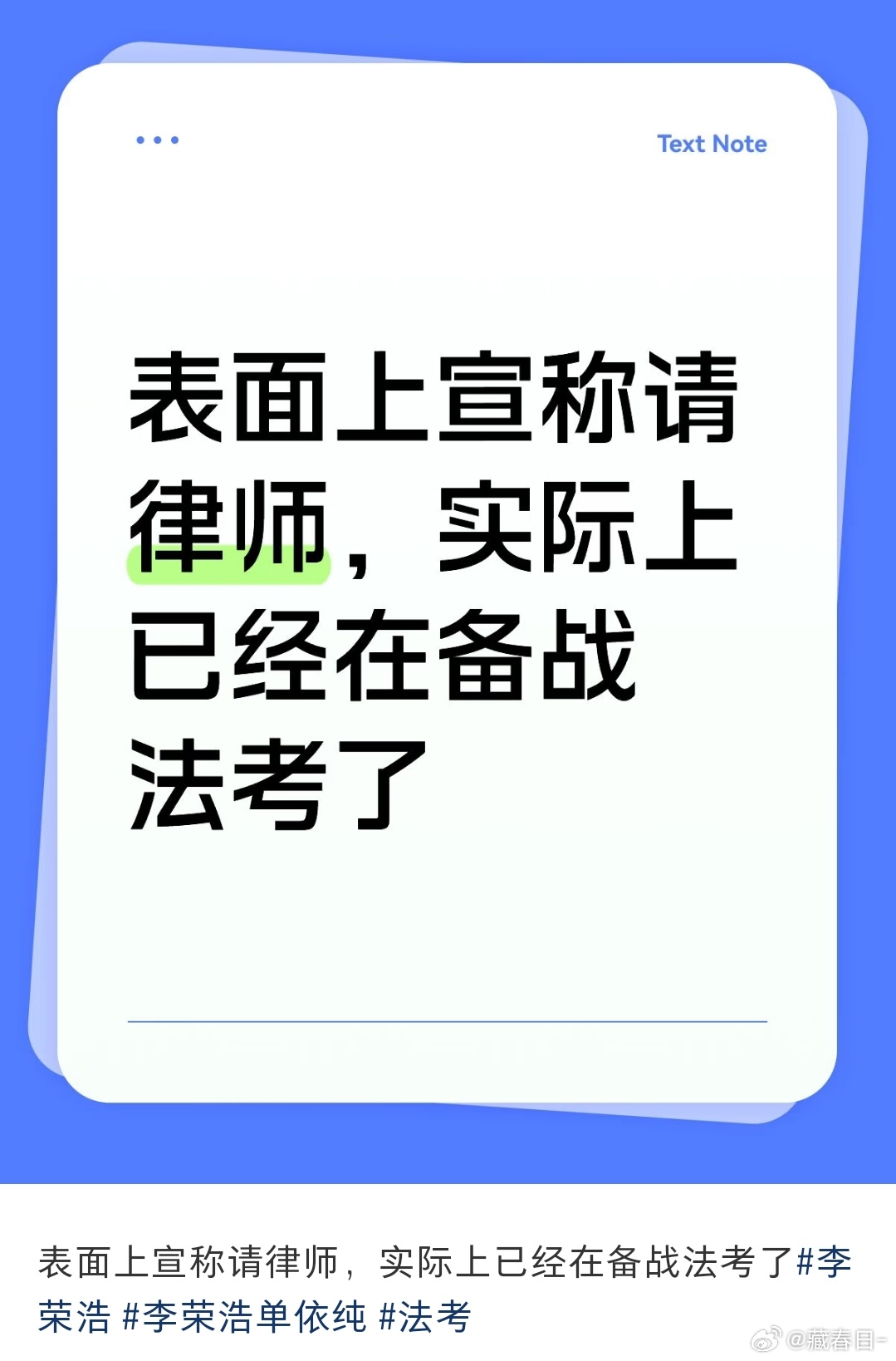 李荣浩但凡有律师资格证我真是要笑晕了,他们说根本没有律师,其实是李荣浩在准备法考,一个人就是一个团队,你别说啥都能干的李老师说不定真有这个计划呢(不是