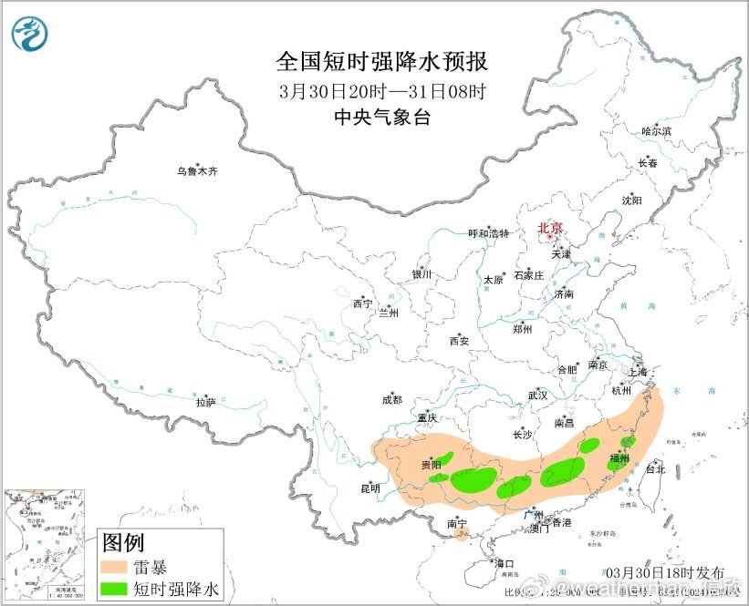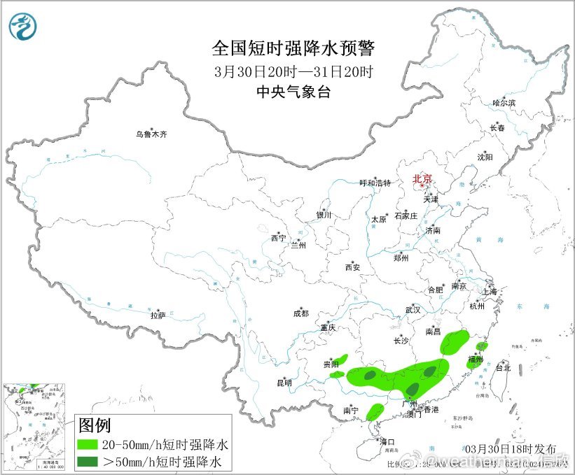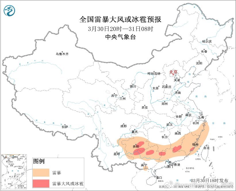 【强对流】今天18时,中央气象台继续发布强对流天气黄色预警:预计3月30日20时至31日20时,西南地区东部、华南中北部、江南南部等地的部分地区将有8级以上雷暴大风或冰雹天气,其中,江西南部、广西北部、广东北部等地的部分地区将有10级以上雷暴大风,最大风力可达11级以上;