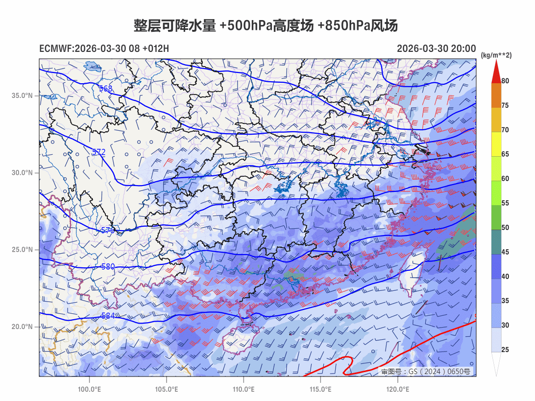 从形势和对流要素的预报看,今晚到明天,从贵州、广西、广东、江西南部和福建一带,有对流能量,还有低涡切变线东移触发对流。部分地区大气整层可降水量可达40毫米甚至50毫米,为短时强降雨提供了充足的水汽。而且垂直风切变也较大,利于对流组织化,不排除还会形成飑线。