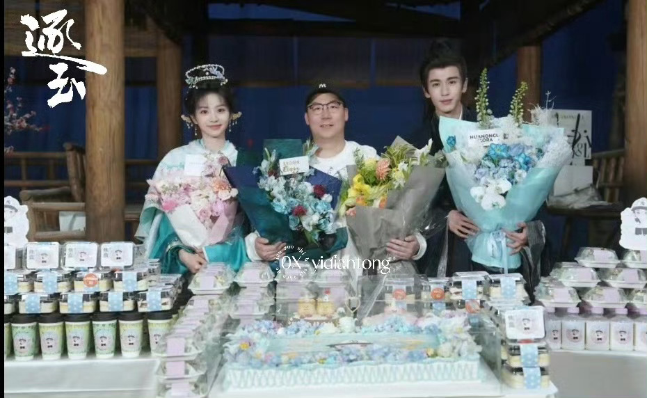张凌赫田曦薇逐玉杀青合照张凌赫田曦薇杀青捧花照