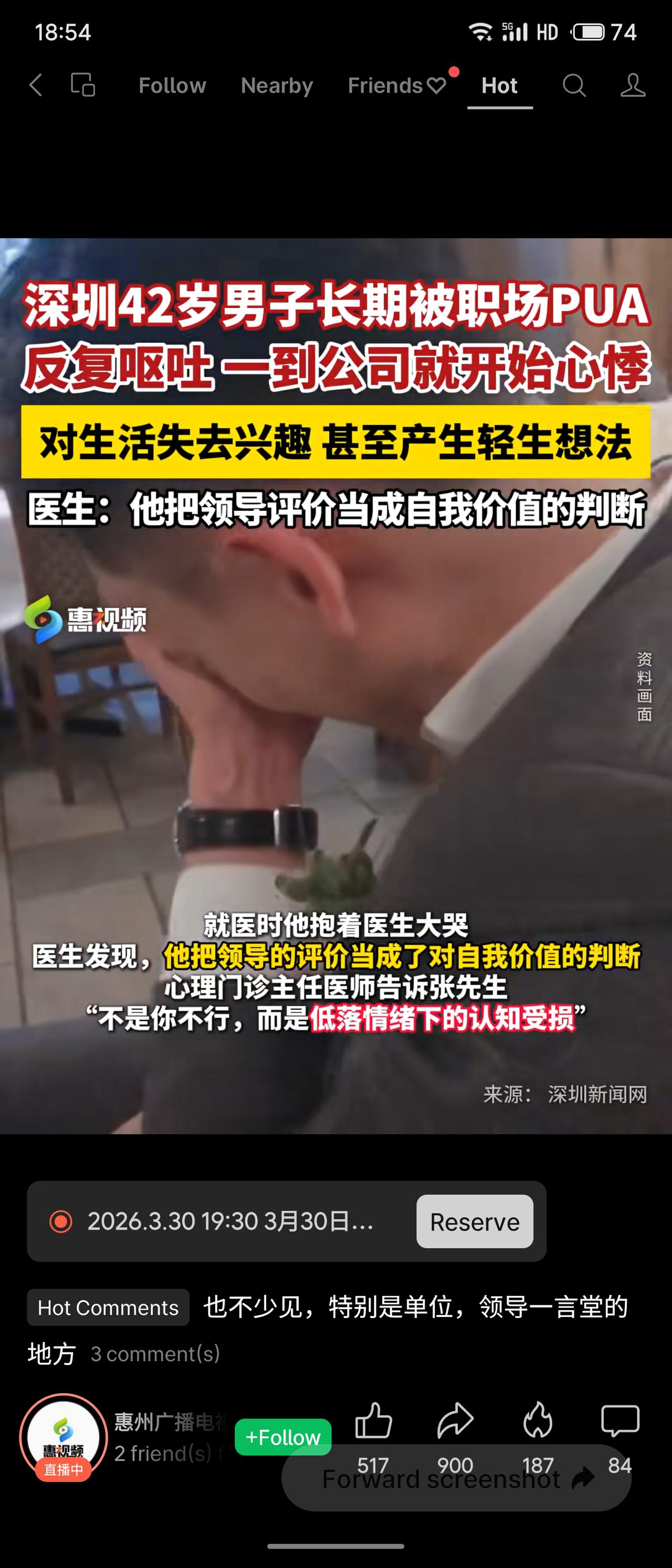 深圳42岁男子长期遭职场PUA,出现呕吐、心悸,甚至轻生念头。医生指出,他把领导