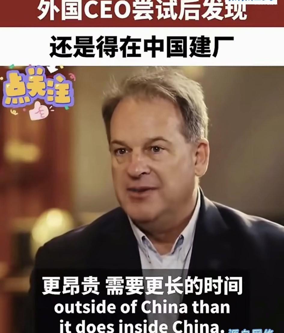 这个老外在接受采访的时候说,还是得在中国建厂! 如今中国不是投资成本最低的国家,但是中国有高质量的劳动力以及完整的制造业生态系统。 他说,有些投资者想要供应链多样化,在中国以外的国家建厂,最后发现,他们往往会需要花费更多金钱和更长的时间,比中国更困难。 果然,全产业链的优势,不是其他国家能比的[赞]