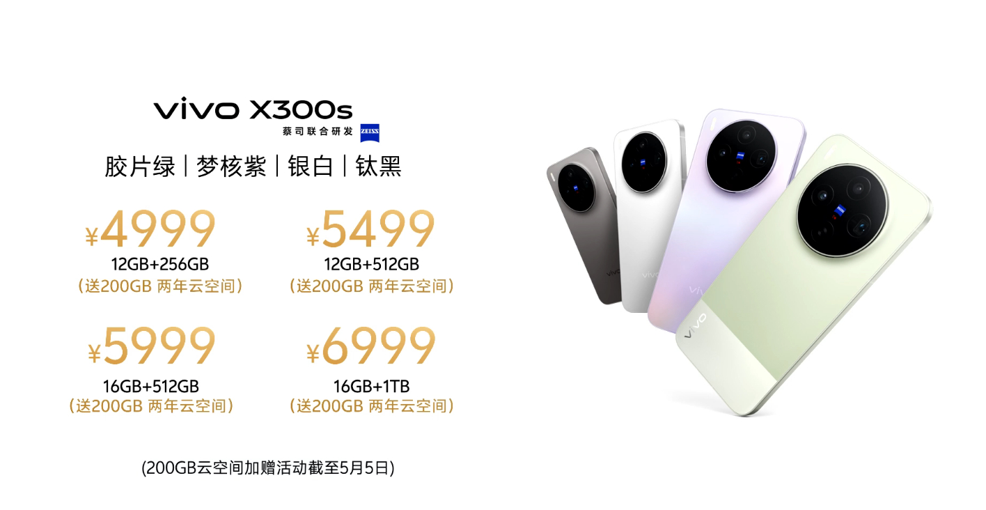 vivo X300s超能小V单 售价出来了,4999起!!而且每款机型都送200G云空间两年!!刚好就是换机周期了!增距镜套装999! 摄影师套装7999!怎么说?