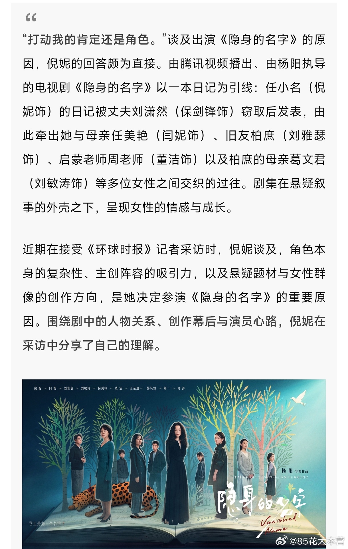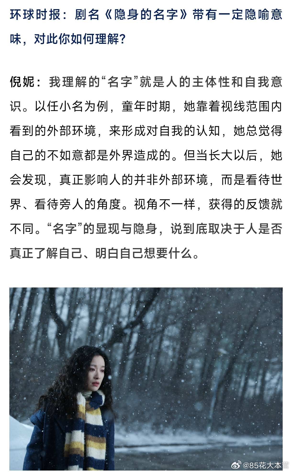倪妮|环球时报个人专访~《隐身的名字》演的很有层次感,表达也丰富有深度!演员倪妮