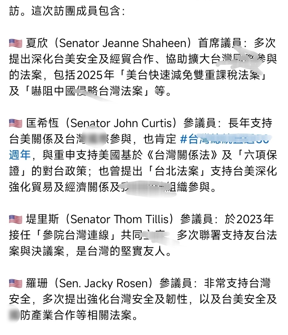 台海局势 美国联邦参议院跨党派代表团今天凌晨乘专机抵达台北松山机场,来催促岛内尽