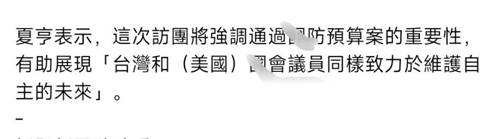 台海局势 美国联邦参议院跨党派代表团今天凌晨乘专机抵达台北松山机场,来催促岛内尽快通过井防预算案——来催款的。