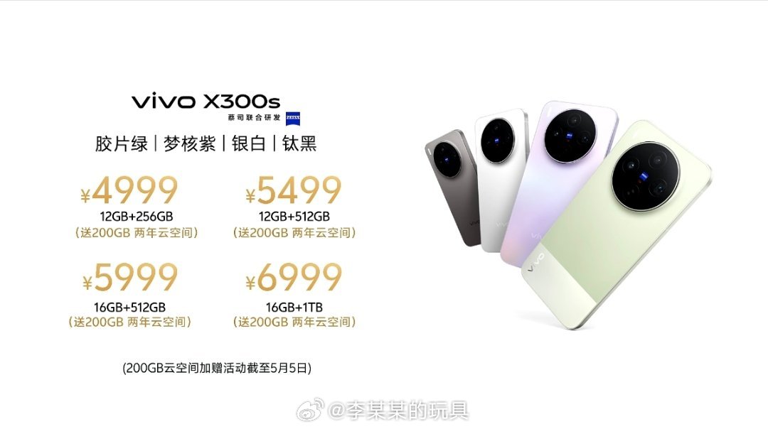 vivo X300s价格来了,4999元起,增距镜G2价格999元;vivo X300s摄影师套装7999元vivo x300s超能小v单