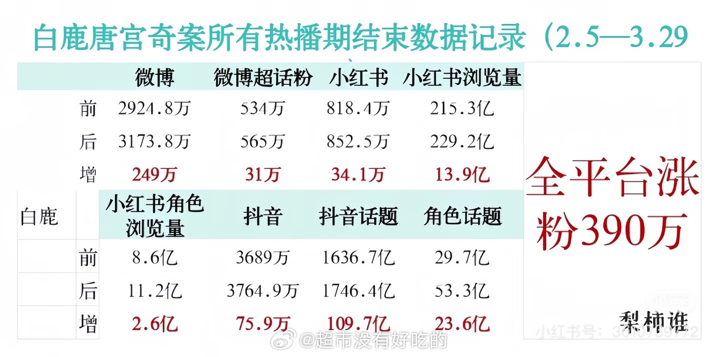 白鹿吸粉能力恐怖如斯😱今年只播了一部唐宫奇案开播2.5截止到3.29全平台涨粉
