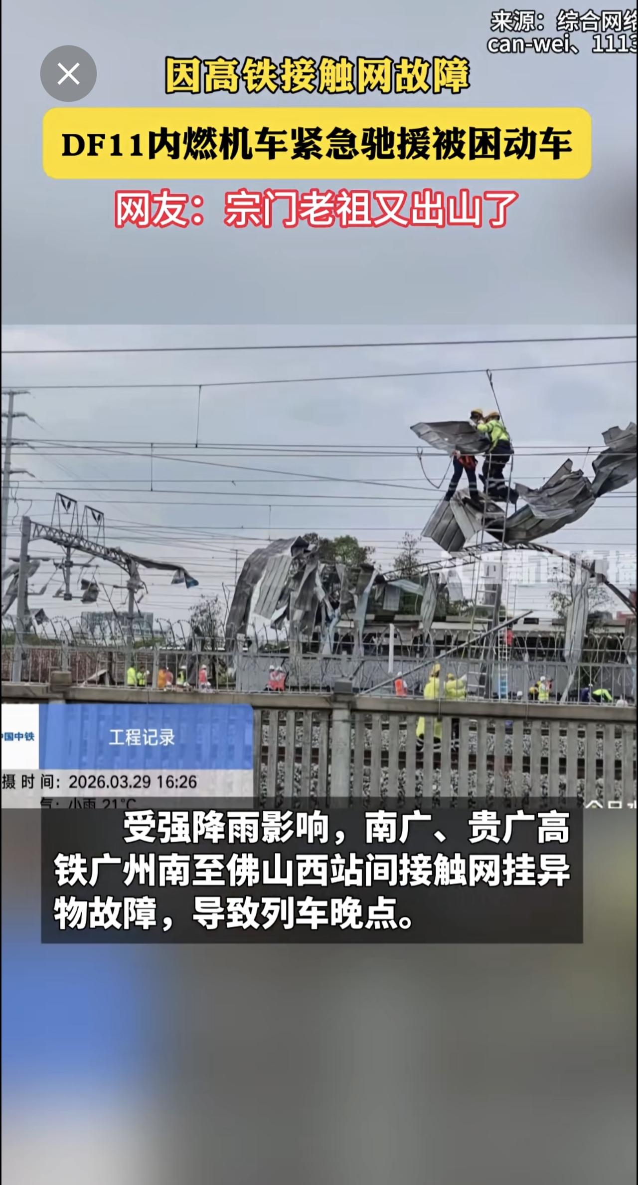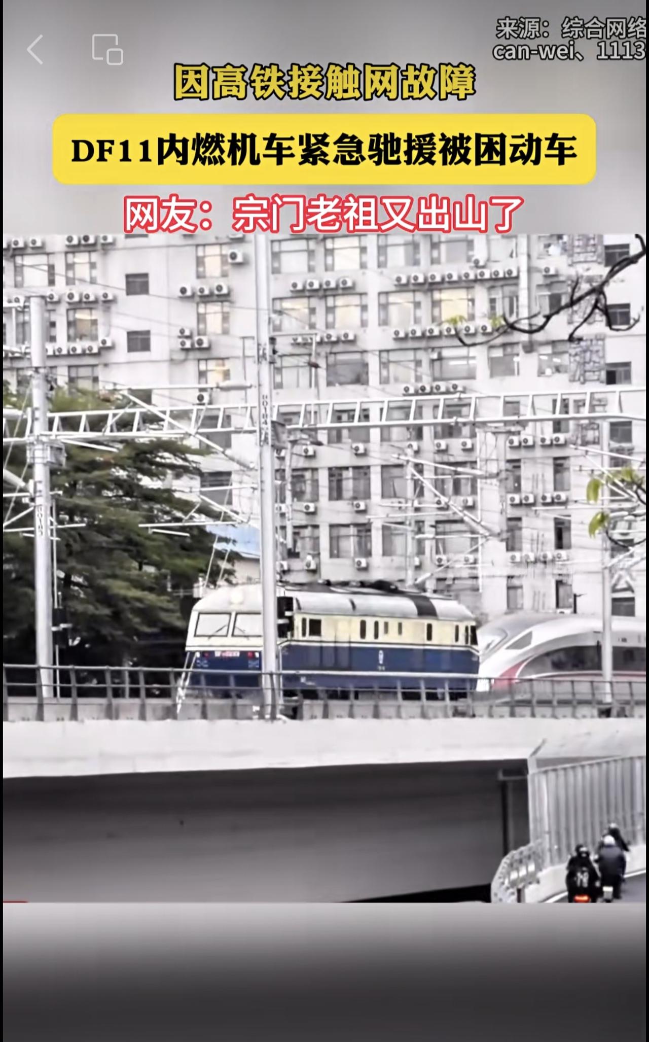 因高铁接触网故障 DF11内燃机车紧急驰援被困动车 网友:宗门老祖又出山了[捂脸]