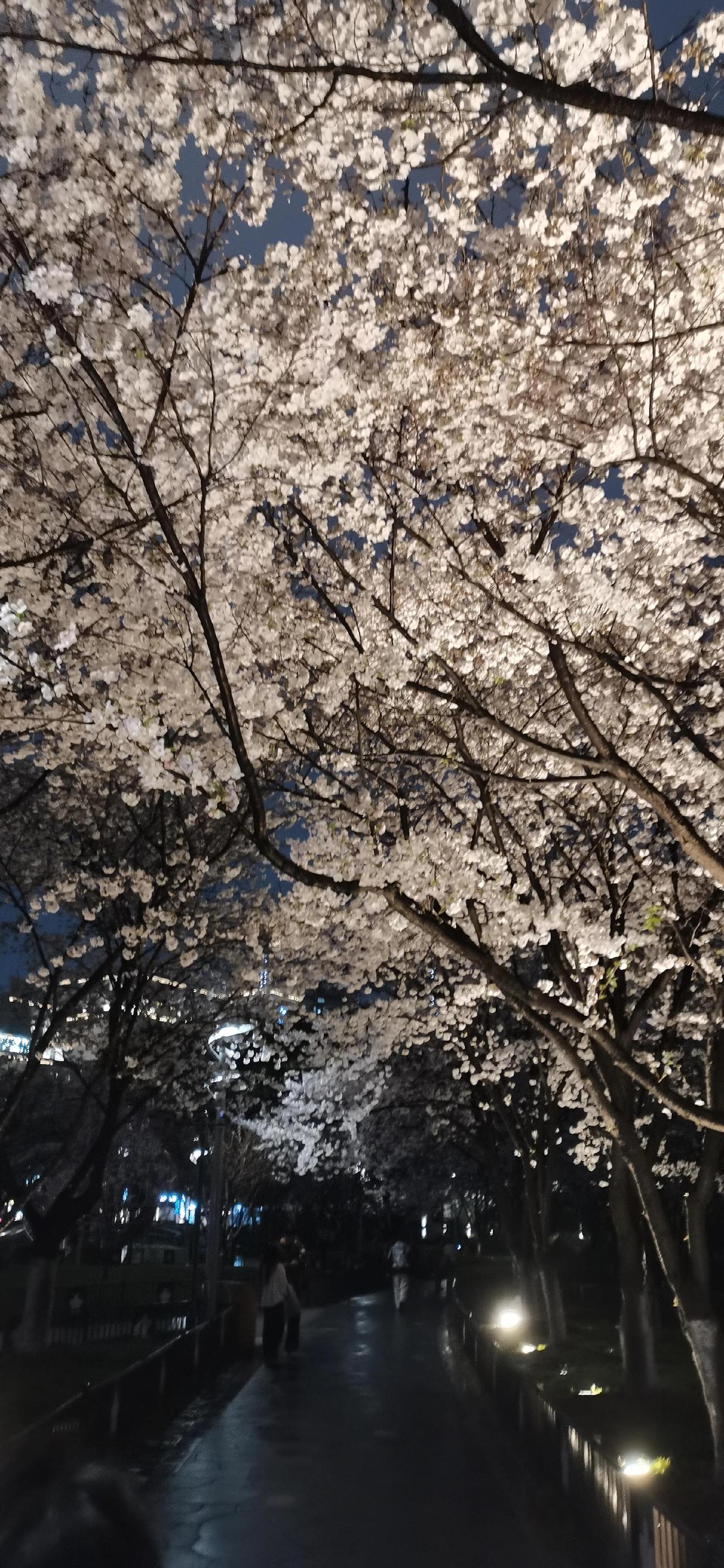 印象中,大家说看樱花最好的出去,是日本和武汉大学校园。前几天看到抖音里的宁波樱花公园,觉得可能是ai发挥作用不小,今天夜晚下了小雨,沿着樱花小道转了一圈,镜头下的美景,远远没法把真实的樱花美呈现出来,大家有时间,白天来走一圈,身临其境。宁波樱花公园樱花开了 樱花