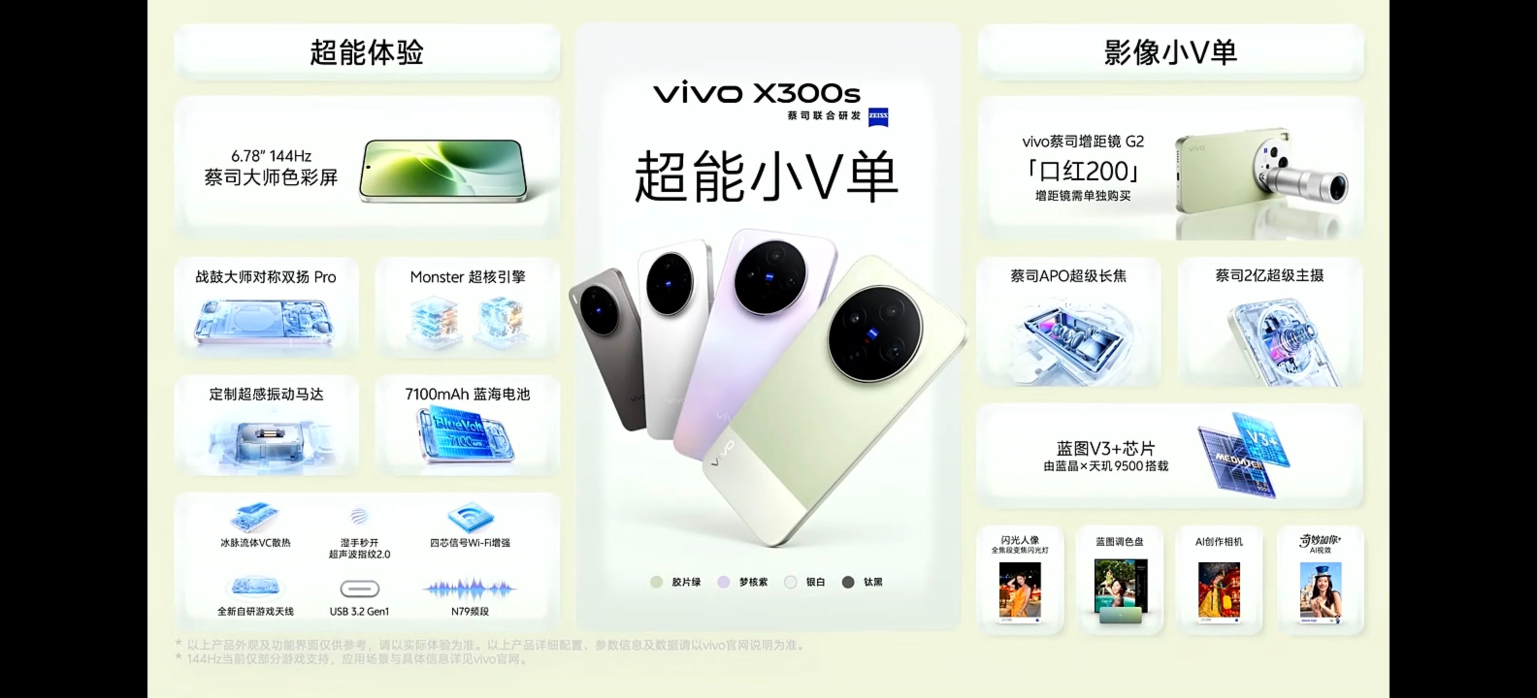 vivo X300s 起售价4999元,顶配6999元!vivo蔡司增距镜G2,