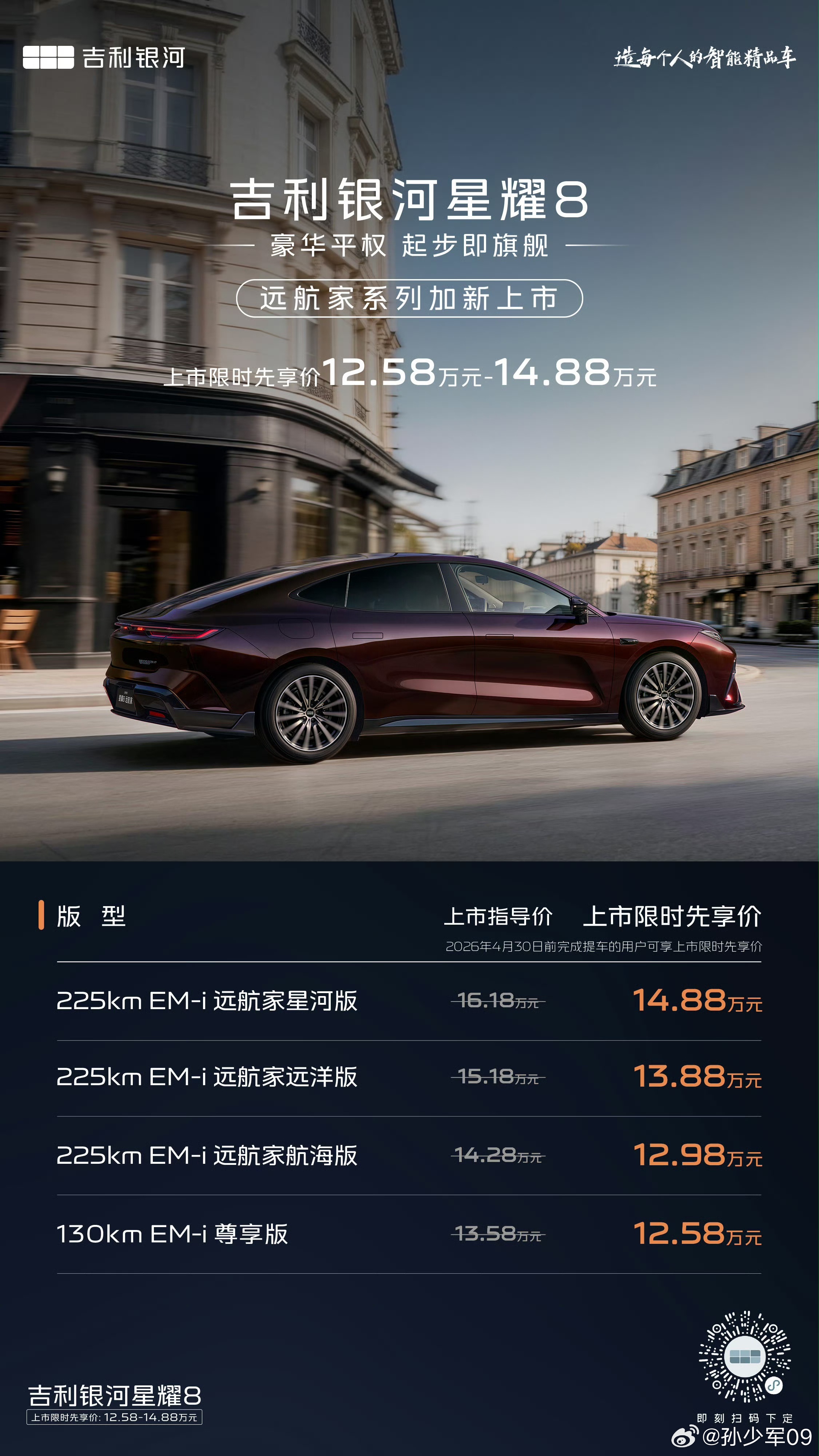 吉利银河星耀8新增远航版车型,限时权益价12.58万元起
