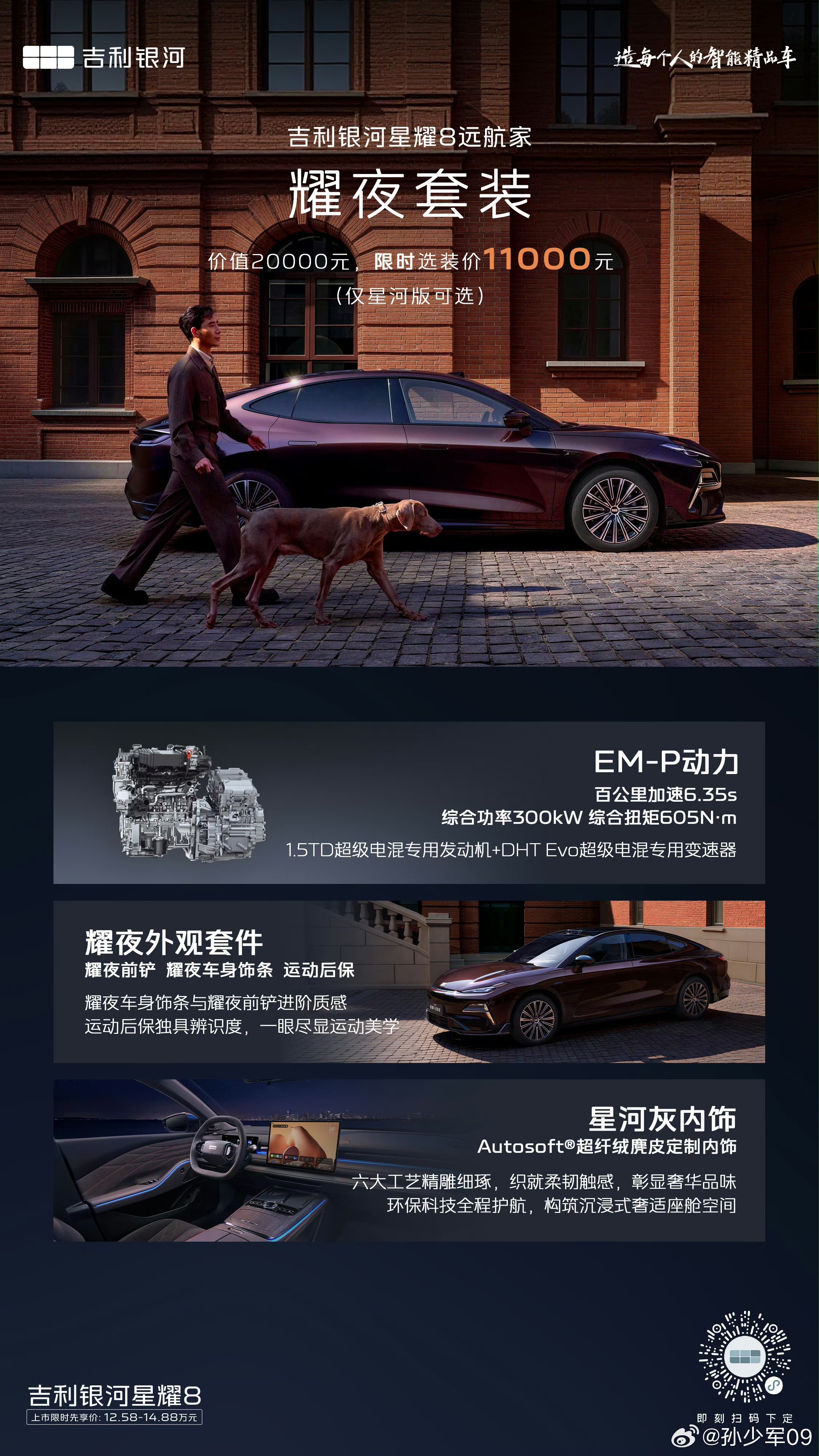 吉利银河星耀8新增远航版车型,限时权益价12.58万元起这个耀夜套装和丹霞矿高定