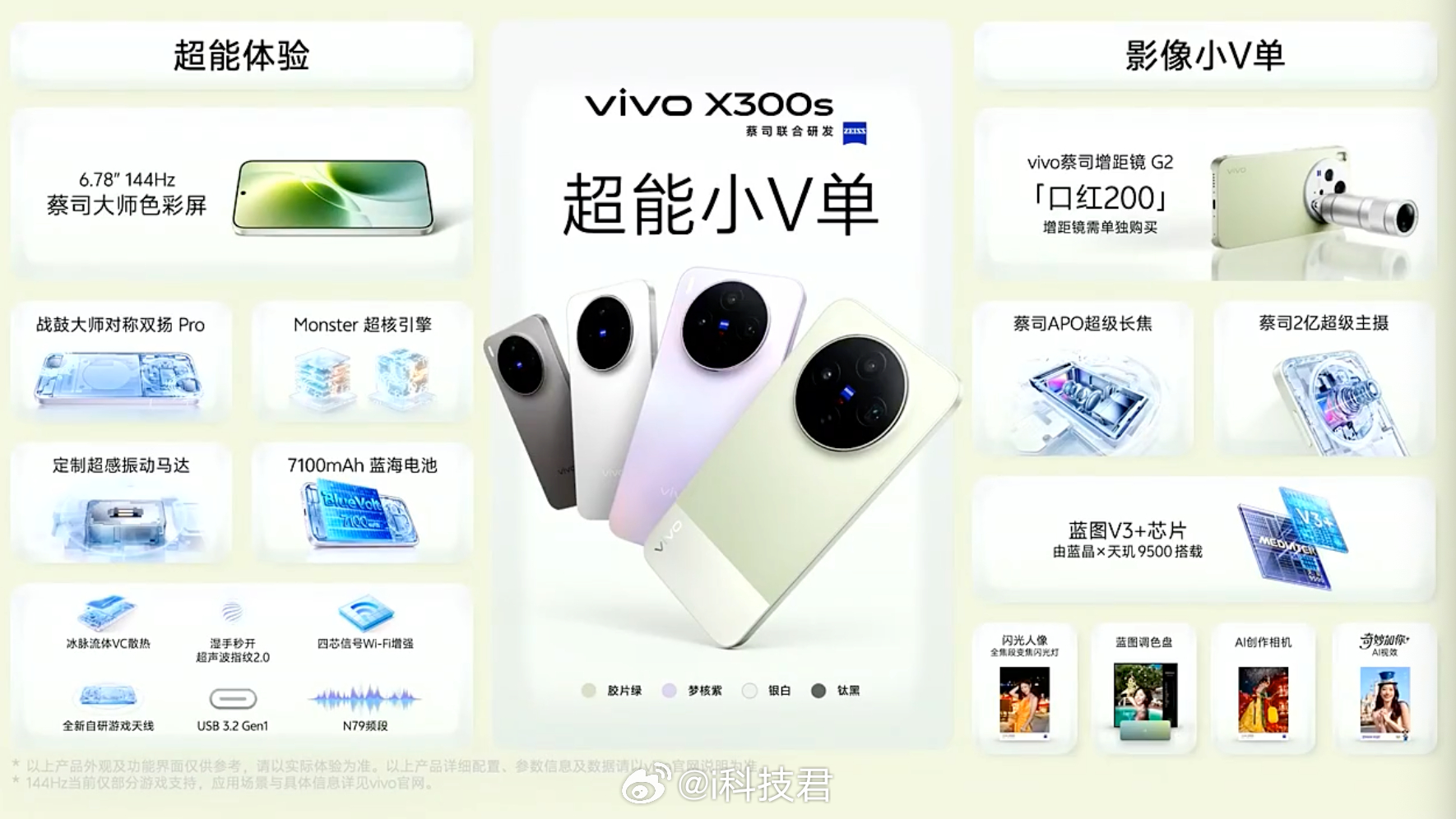 vivo X300s超能小V单vivo X300价格12+256GB 4999;国补449912+512GB 5499;国补499916+512GB 5999;国补549916+1T 6999