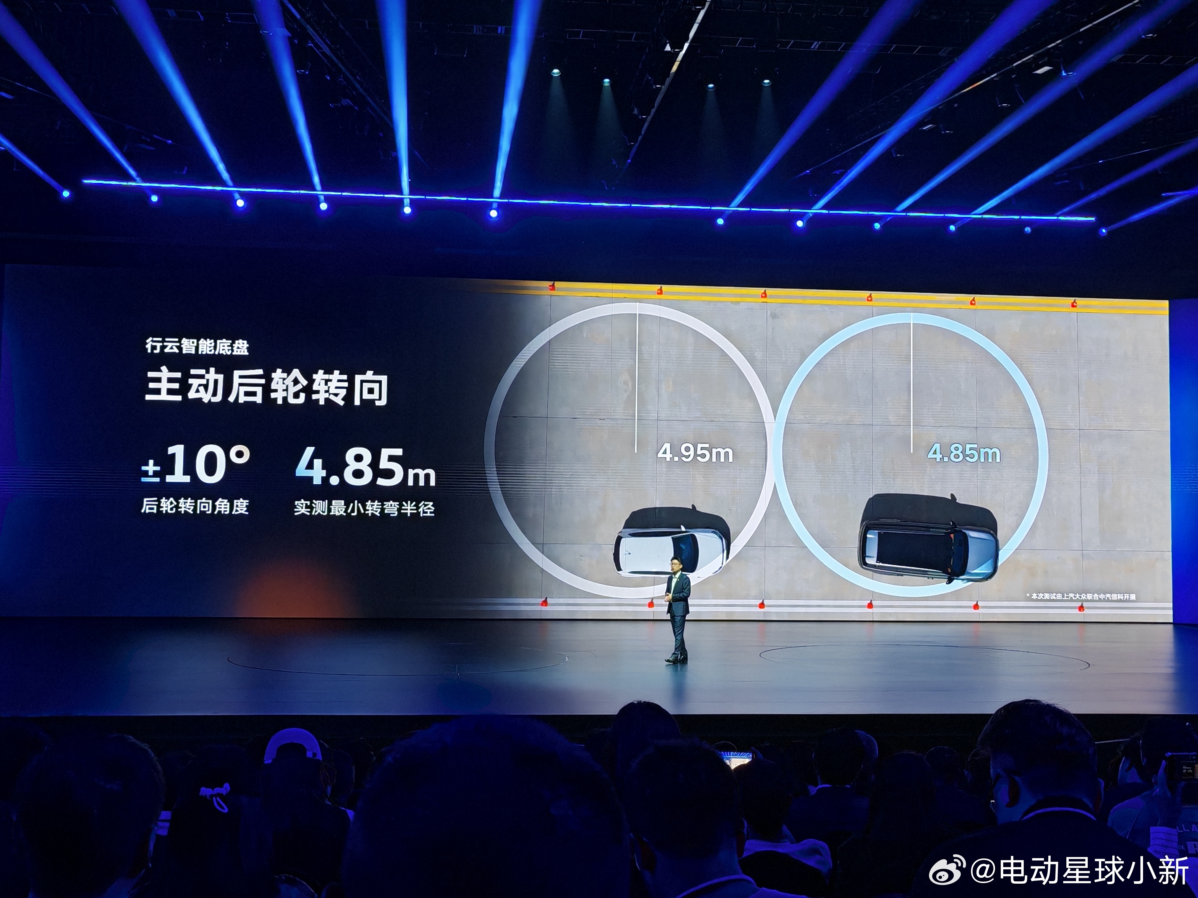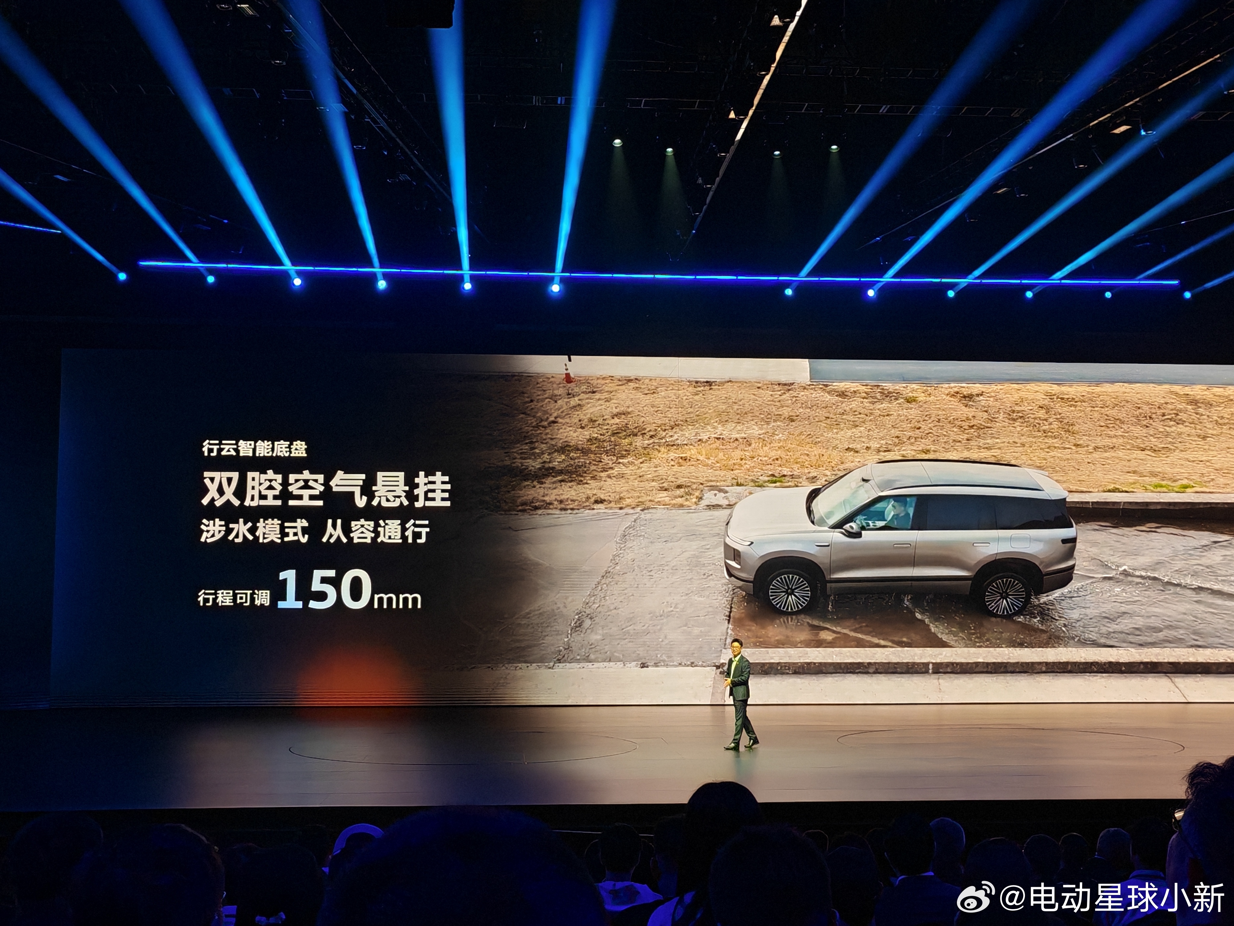 配有双腔空悬、主动后轮转向、前双叉臂 + 后五连杆等硬件与能力,VMC 智能底盘的能力之下,可对路面进行预瞄以及时调节车身姿态。