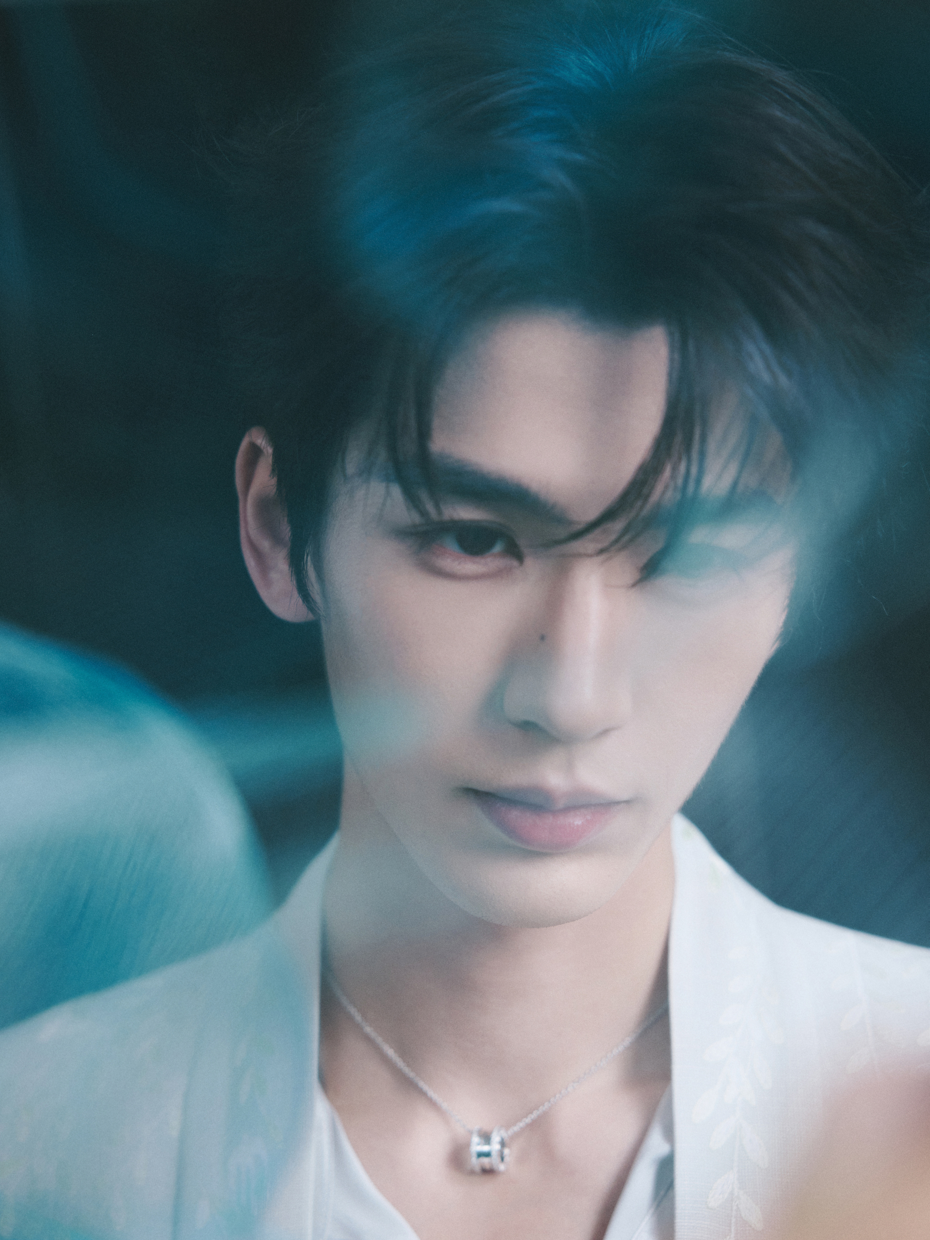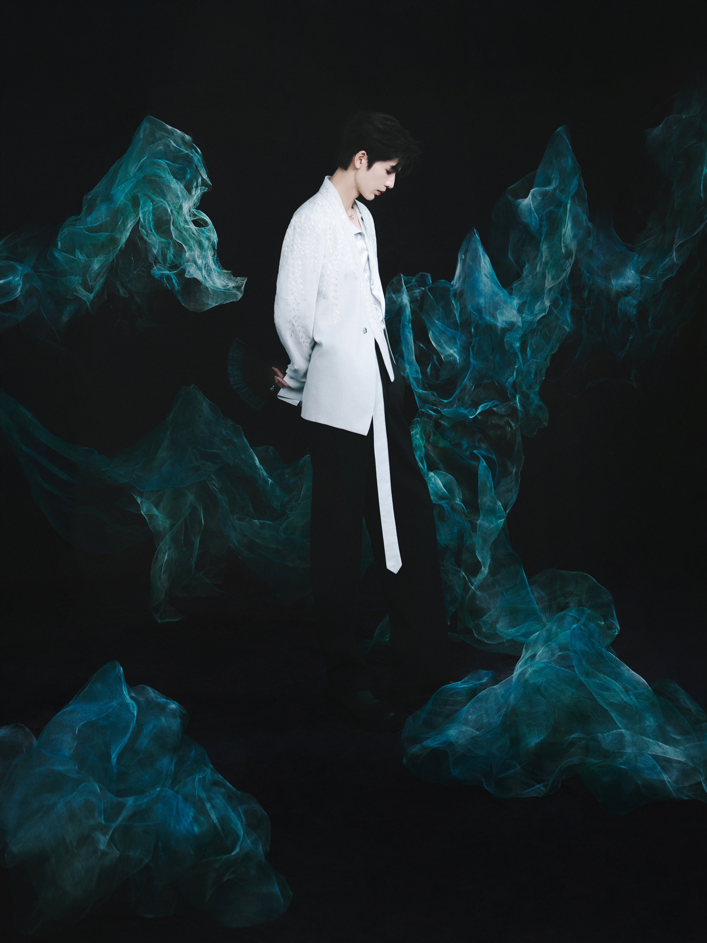 张凌赫 × 今日华帝品牌直播活动造型大片,纱幔清幽,如烟雾飘渺,BVLGARI 珠宝点缀,水墨冷调下清朗温润的古风少年优雅登场~💧✨