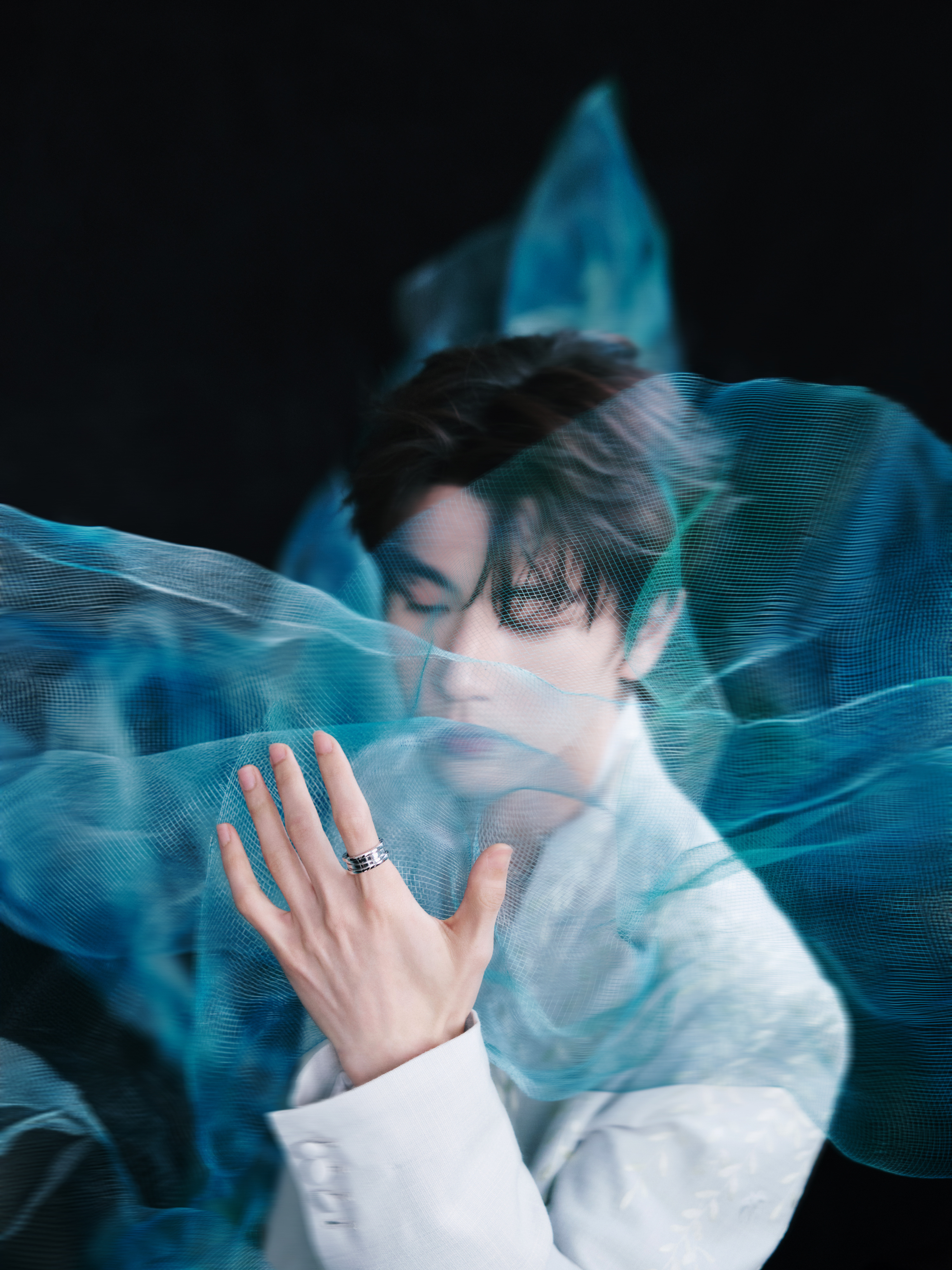 张凌赫 × 今日华帝品牌直播活动造型大片,纱幔清幽,如烟雾飘渺,BVLGARI