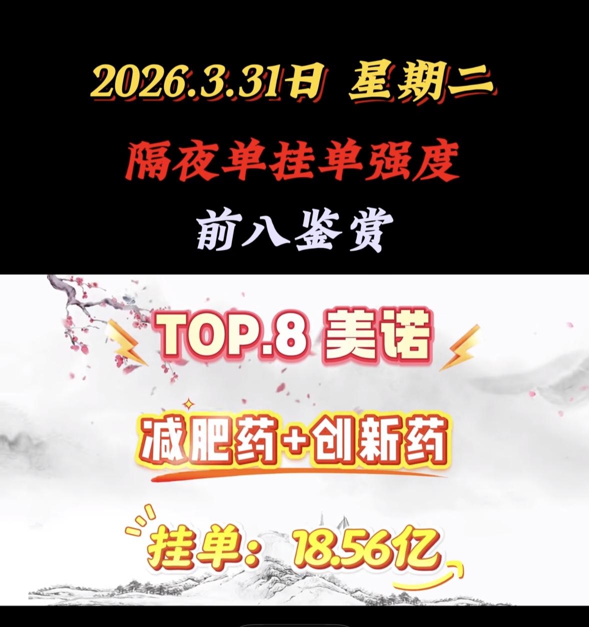 3月31日暗盘隔夜挂单排行榜揭晓 2026年3月31日,美诺减肥药创新药要强势