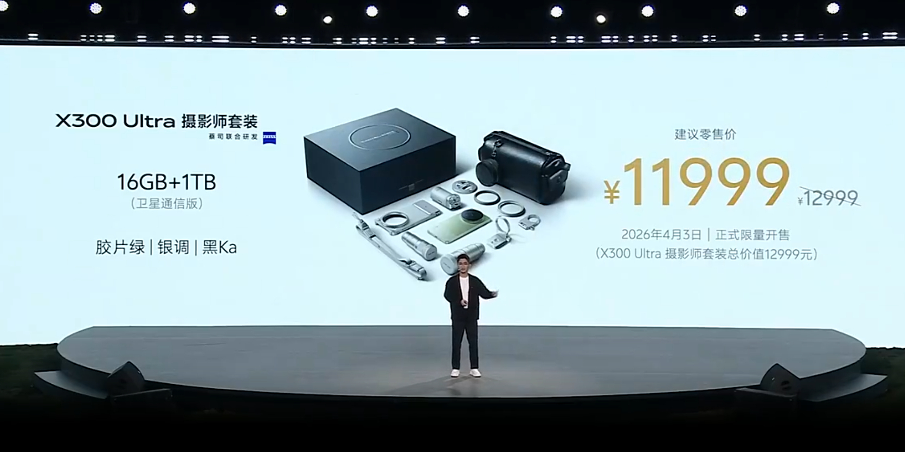 同时推出摄影师专属套装,限时定价11999元,为专业影像用户带来一站式创作体验。vivo x300 ultra专业v单