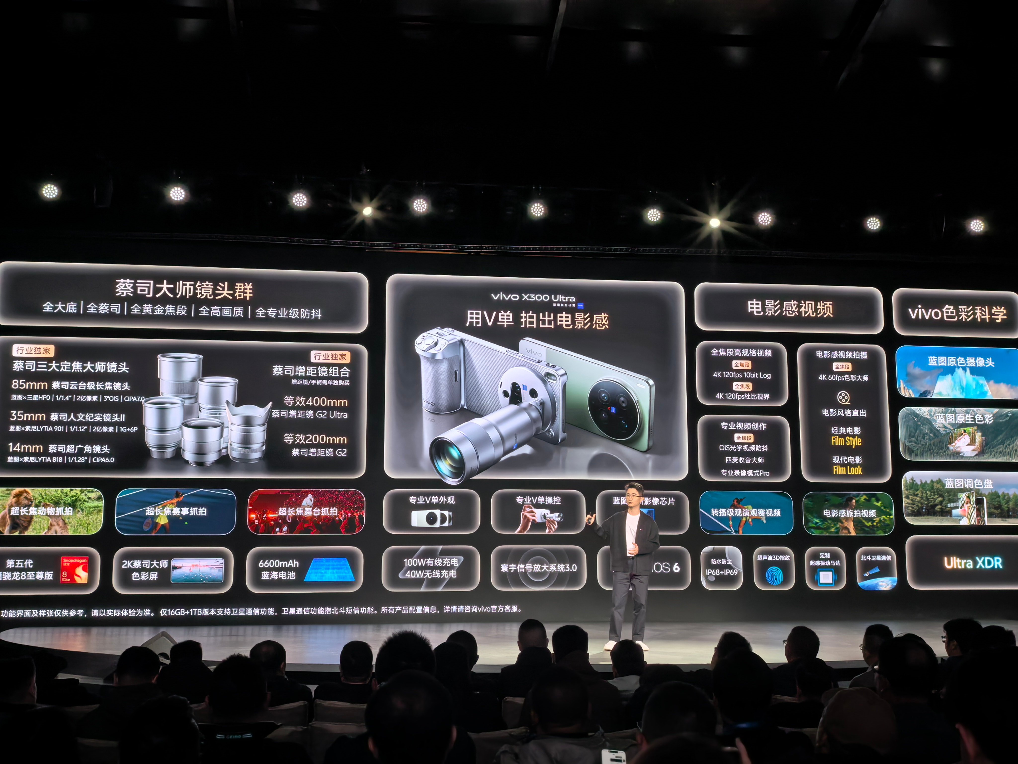 vivo X300 Ultra视频拍摄:支持全焦段4K 60fps色彩大师,以及全焦段4K 120fps 10bit log、4K 120fps电影慢动作、4K 120fps杜比视界、4K 60fps人像录像和4K延时录像,还有多款胶片色彩风格和蓝图调色盘。看来这次vivo在视频上发力了。你满意了吗?