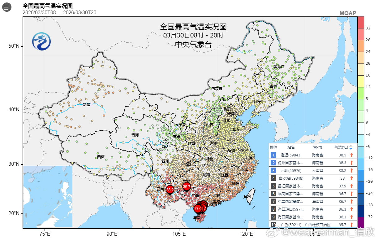 【气温】今天海南、云南、广西的部分站点出现高温。未来这一带,依然是高温频发的区域。海口明天预报37℃,气温可能再创今年新高。明天冷空气下江南,湖南江西浙江部分地区降温可能超10℃。不过后天江南放晴,气温明显上升。未来2天江南的气温变化,先后体现了平流和辐射(光照)因素的影响。