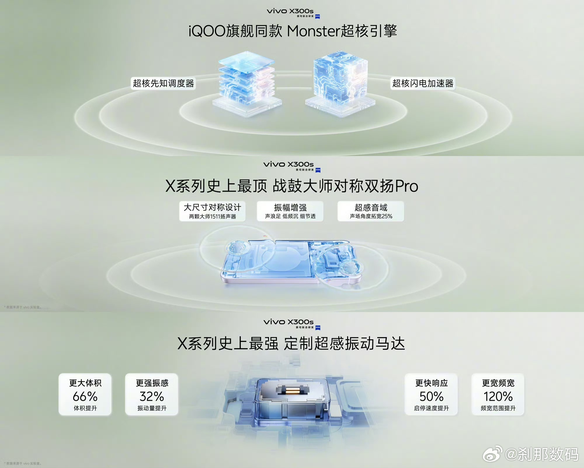 vivoX300s到底有多Super研究了下vivo X300s的参数,这机子是真的实在。影像没得说,蔡司2亿超级主摄、APO超级长焦加上蓝图影像芯片V3+。我最喜欢它那个闪光人像和蓝图调色盘的设定,平时出门随手按两张,氛围感应该就能轻松拿捏。刹那有些意外的是,它居然还给了块 144Hz 的电竞大直屏,连 iQOO 同款的 Monster 超核引擎都搬过来了,电池更是直接拉到了 7100mAh。不是主打拍照吗,游戏配置和续航也整这么野想要兼顾影像和游戏的话,刹那觉得可以优选vivo X300s,主打一个全能没短板。