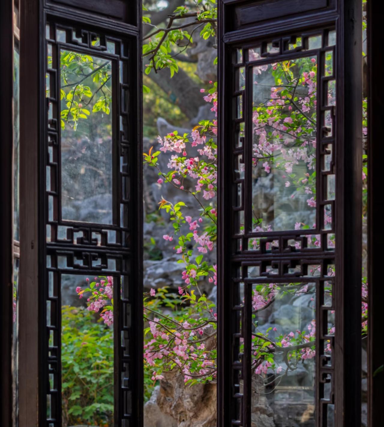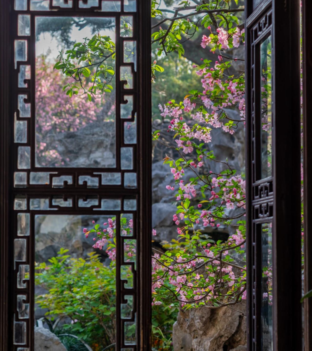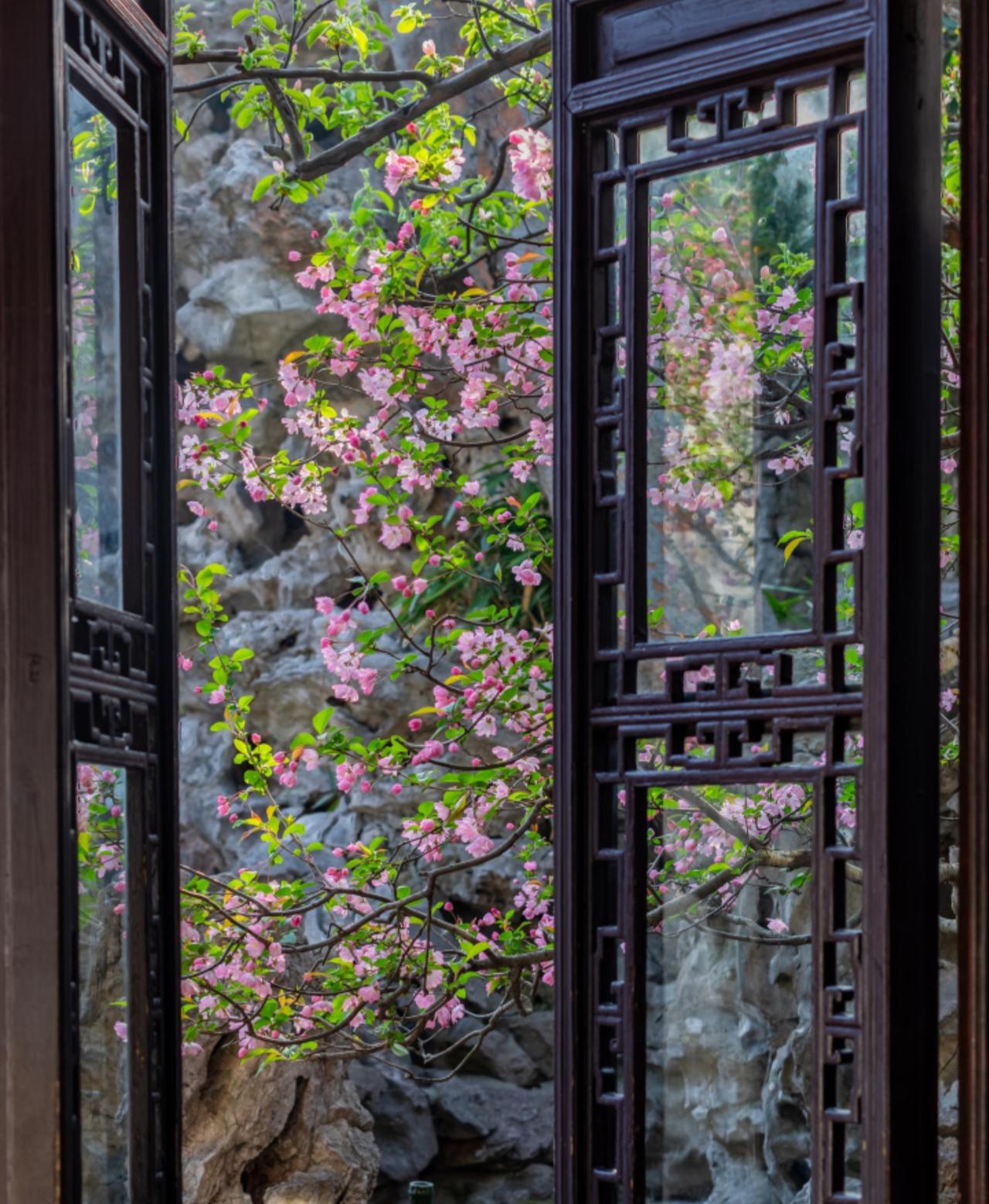 越来越佩服古人的审美了! 早在上个月开始, 就一直关注留园海棠的开放情况。 生怕错过了短暂的花期! 当确认海棠已经开放的消息后, 便立即买了前往苏州的车票, 一切都是那样的完美。 踏入留园后, 被眼前的景色惊呆了。 只见粉白花瓣探入花窗, 如同古人笔下走出的春天一般。 有些海棠与假山奇石相映, 有的则倚着粉墙黛瓦绽放。 搭配上留园独有的花窗, 随手一拍就是大片! 海棠花 留园 苏州园林