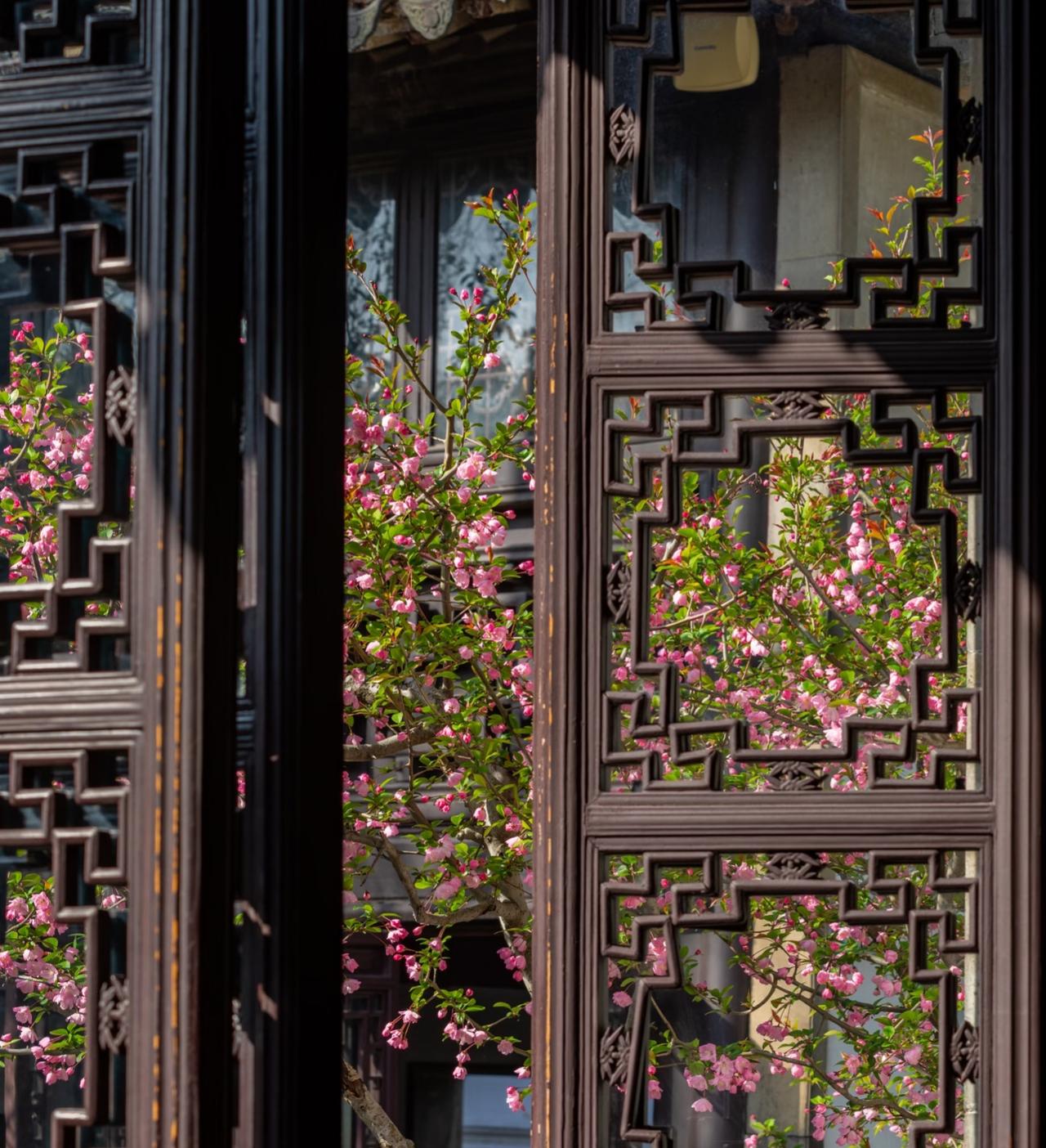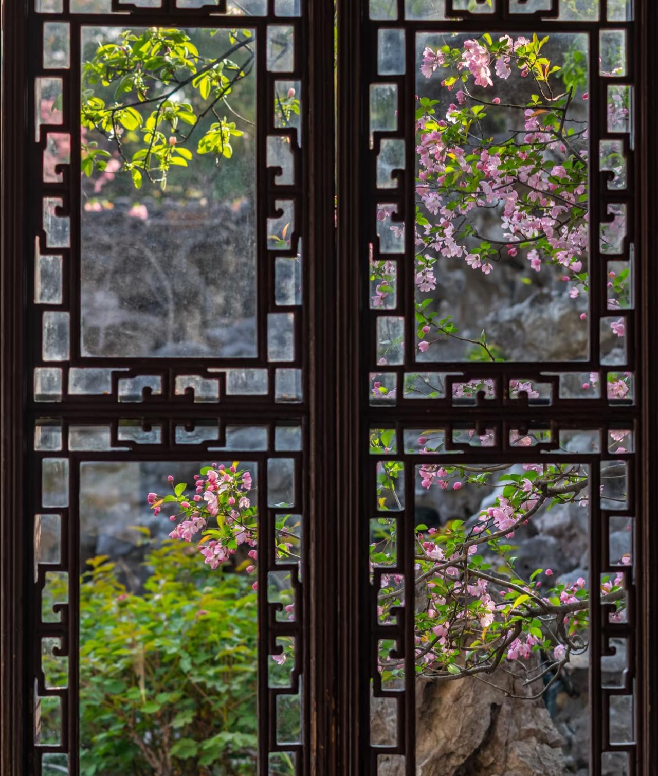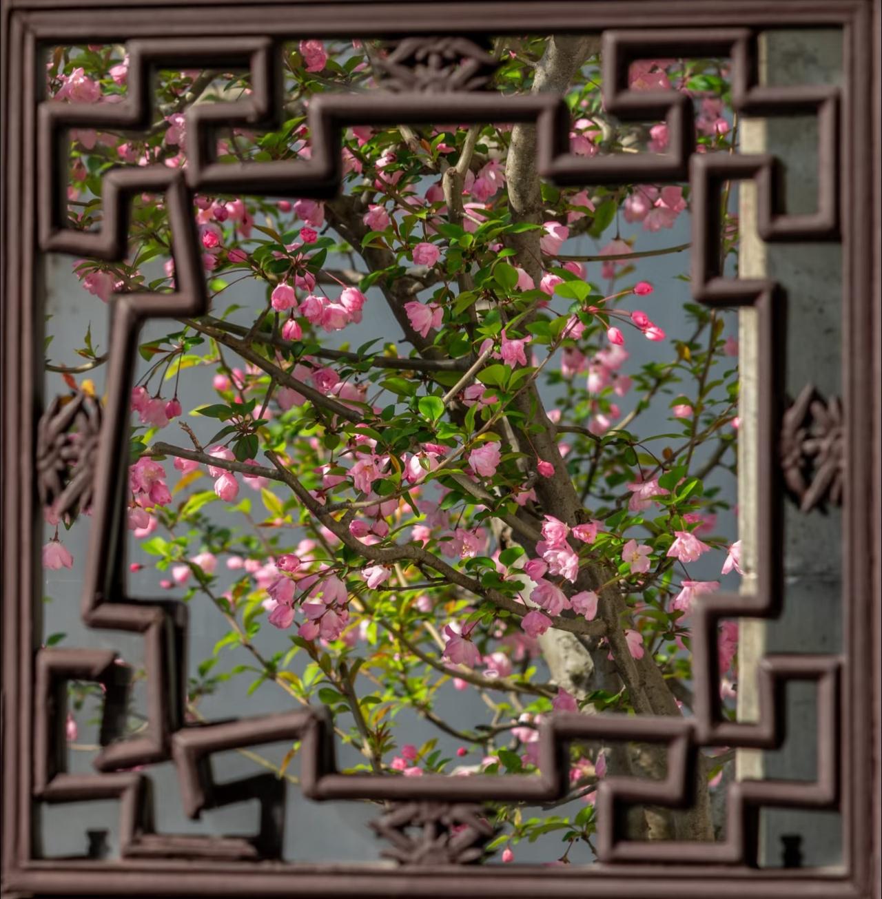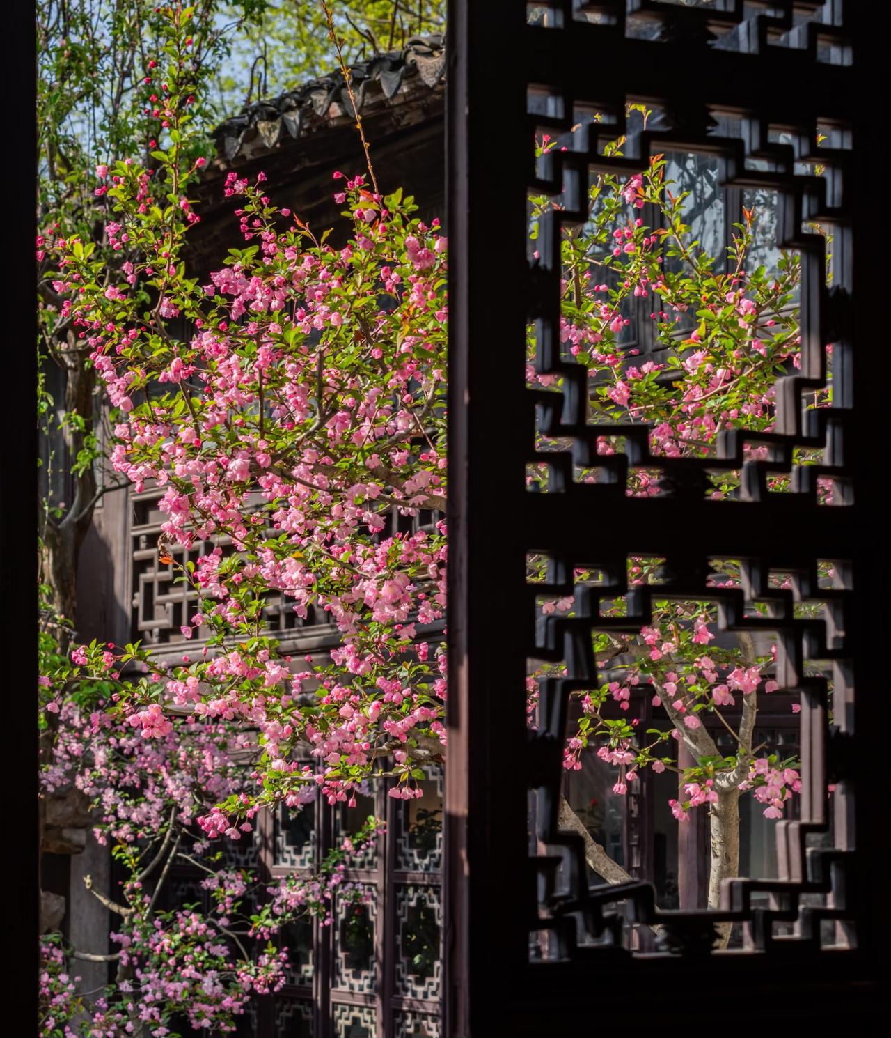 越来越佩服古人的审美了! 早在上个月开始, 就一直关注留园海棠的开放情况。 生怕错过了短暂的花期! 当确认海棠已经开放的消息后, 便立即买了前往苏州的车票, 一切都是那样的完美。 踏入留园后, 被眼前的景色惊呆了。 只见粉白花瓣探入花窗, 如同古人笔下走出的春天一般。 有些海棠与假山奇石相映, 有的则倚着粉墙黛瓦绽放。 搭配上留园独有的花窗, 随手一拍就是大片! 海棠花 留园 苏州园林