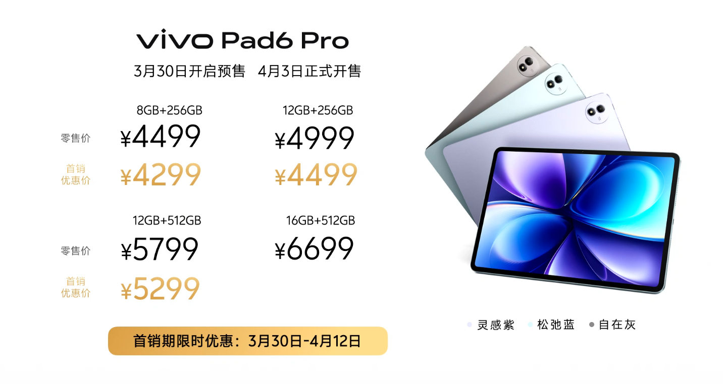 vivo Pad6 Pro 售价也来了,4499起!4K屏幕!4K享受!