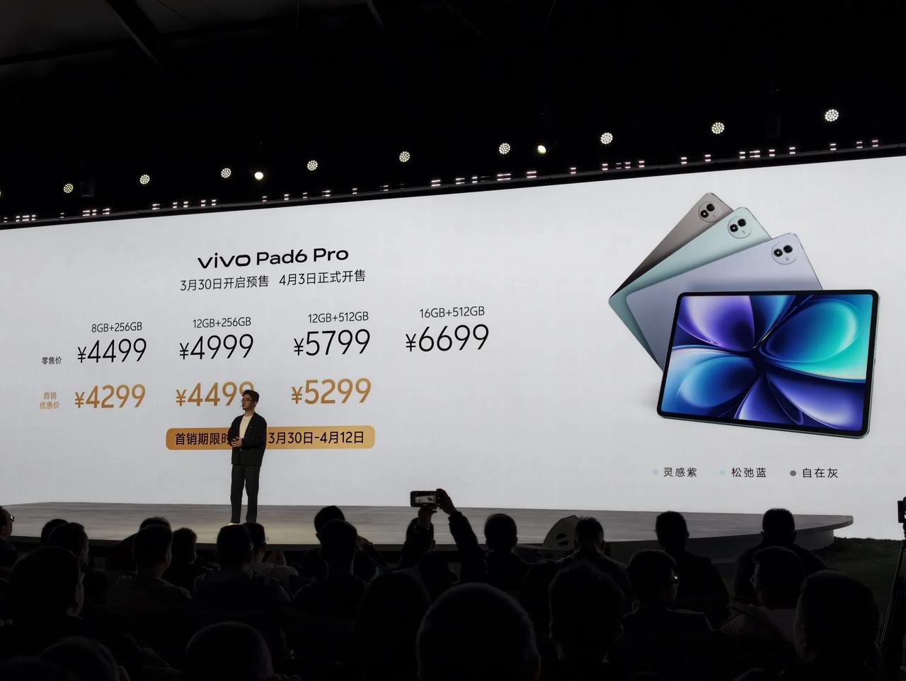 vivo Pad6 Pro发布,首销价4299元起! 平板行业首款4K屏,第五代骁龙8至尊版+Monster超核引擎+VC立体散热系统,支持4K超分FPS国民射击手游以及多款原生4K游戏,PC级 剪映专业版搭配vivo Pencil3手写笔,4K大屏精准微操剪辑;手机拍4K大片,Pad6 Pro剪4K大片,拍传剪发全链4K。