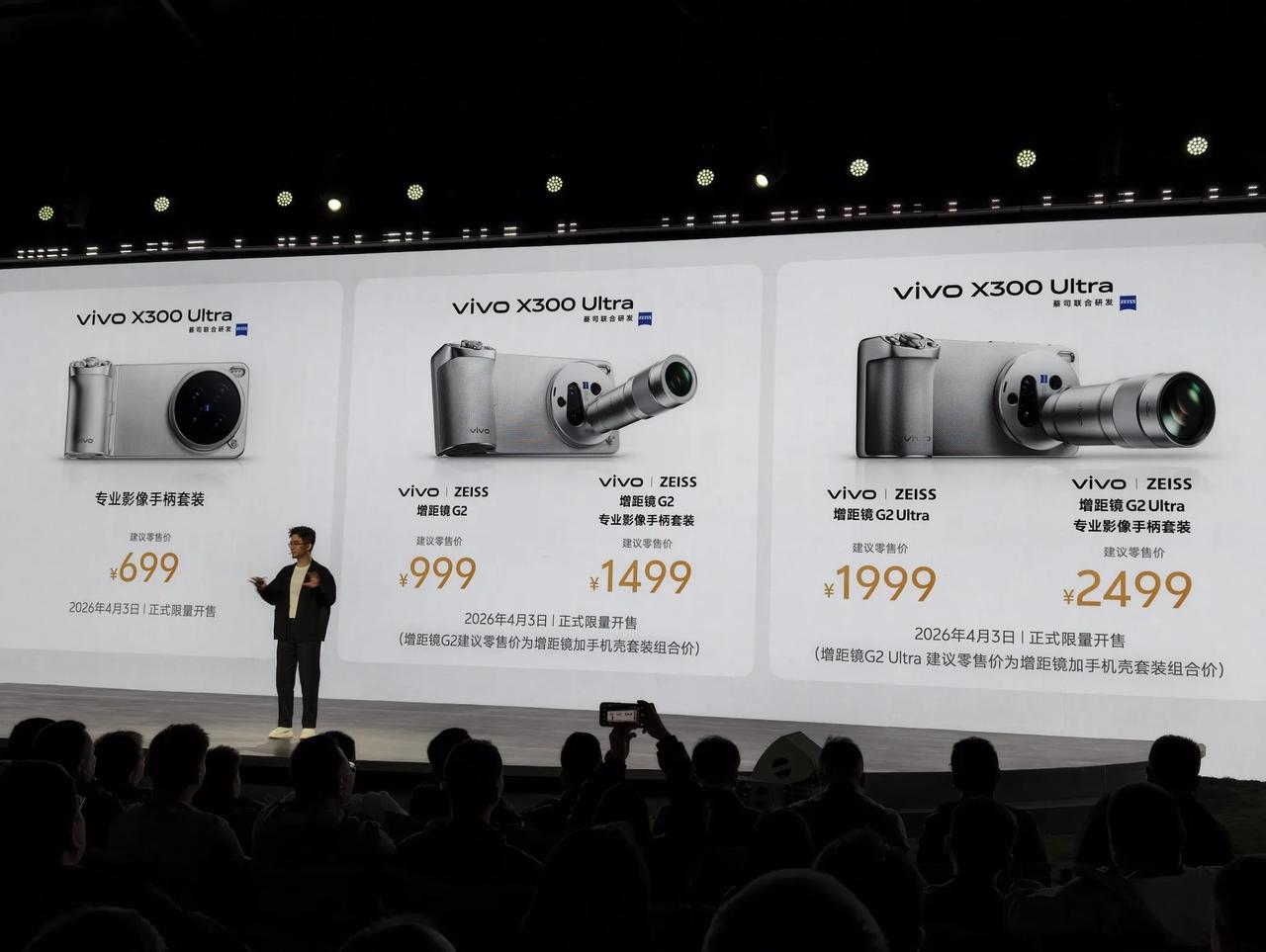 这是V单、口袋摄影机,vivo X300 Ultra正式发布,再次刷新对手机影像的认识。6999元起售,1T影像套装首发价11999元,还有双增距镜以及专业兔笼。