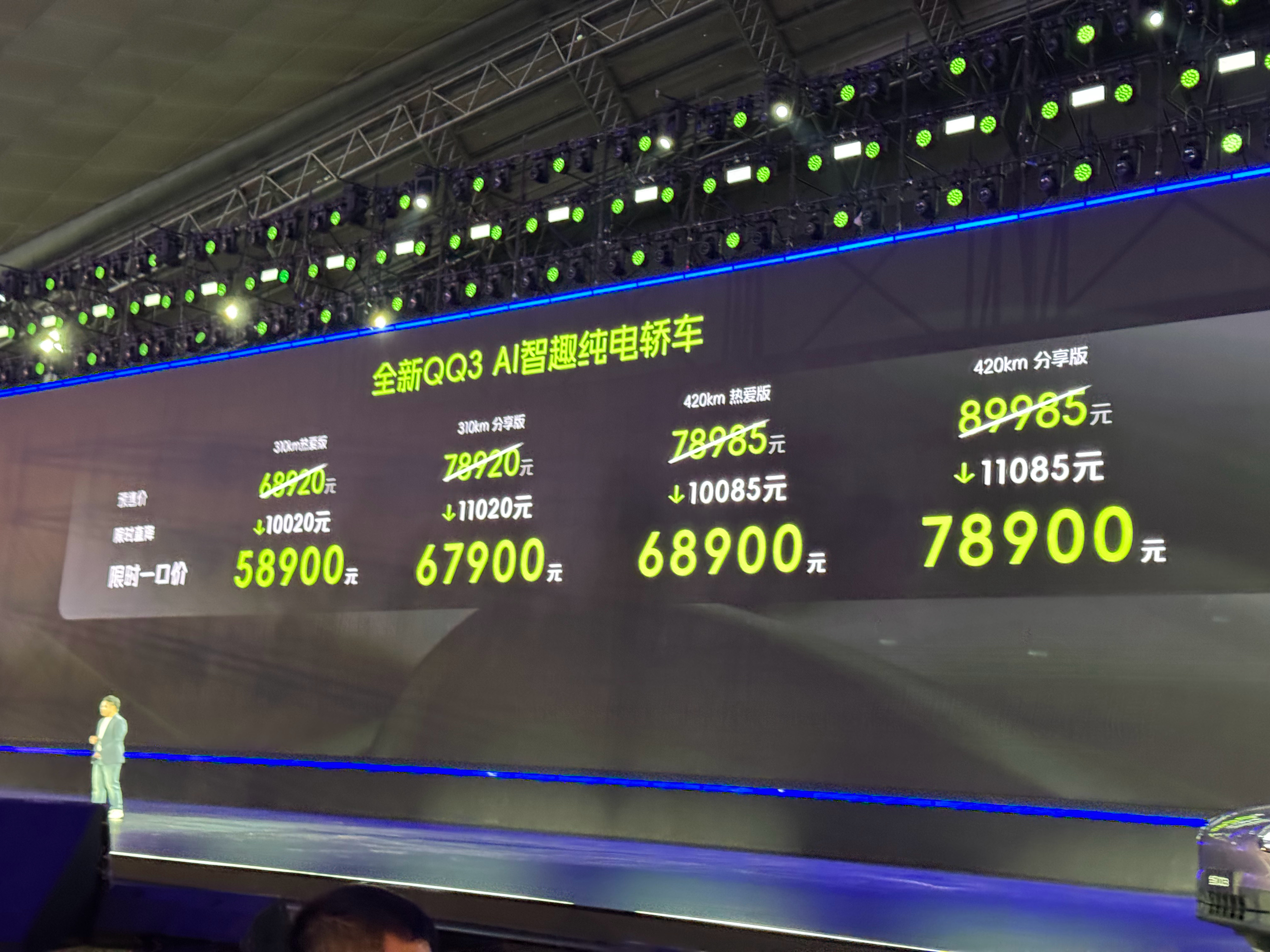 太猛了,相比于预售价,降了一万多!这车产品力相当不错,有同级唯一的70L智能电动前备箱、1300MPa一体式热成型门环、还有同级领先的猎鹰驾辅、16.5分钟极速快充,再到AI智能体、车外语音控车等创新体验,全新QQ3在安全、空间、驾乘、智趣、品质每一维度都力求“一部到位”!