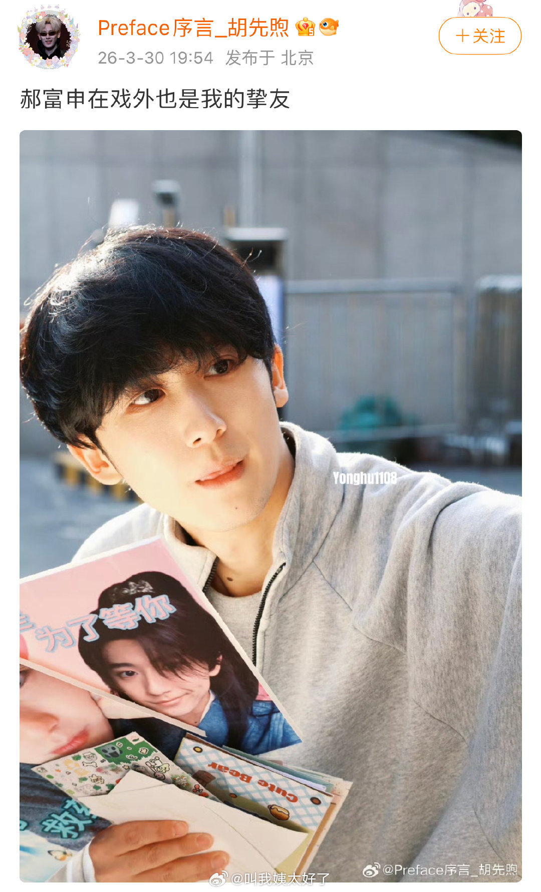 胡先煦站姐发了郝胡被举了,现在又开始发郝富申的单人图和胡先煦的生图。还是愚人节味儿