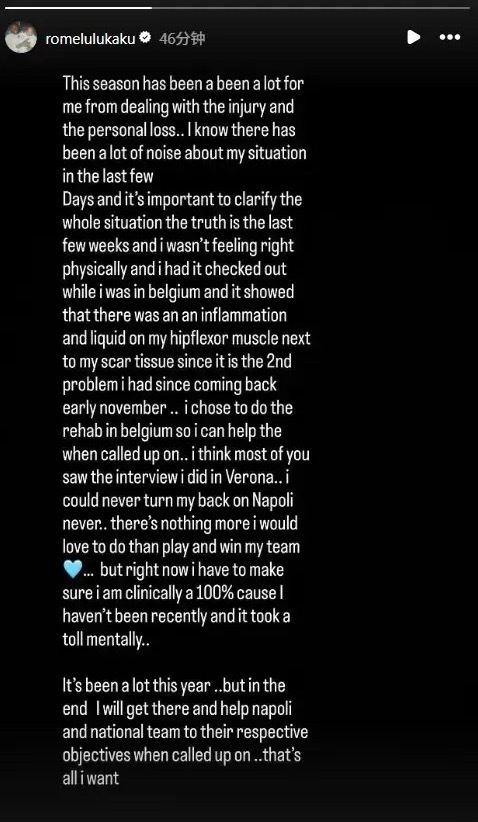 北京时间3月30日,卢卡库社媒发文回应争议:此前因伤退出比利时队却未按约定返回那不勒斯,遭外界批评。长篇大论的小作文解释了半天,声明里最乍眼一句话就是:“我绝不会背弃那不勒斯,绝不会。”虽然我不是国米球迷,但耍了国米两次的他,怎么能说出这种话?!!!国际米兰