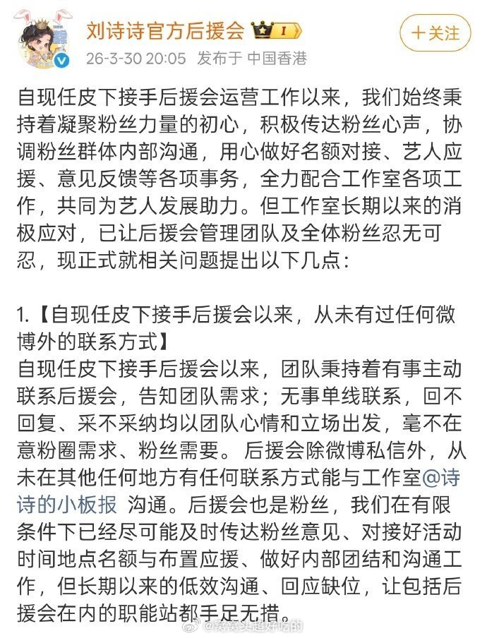 刘诗诗的官方后援会也发长文维权从散粉到站姐再到hyh,都下场要求整改了